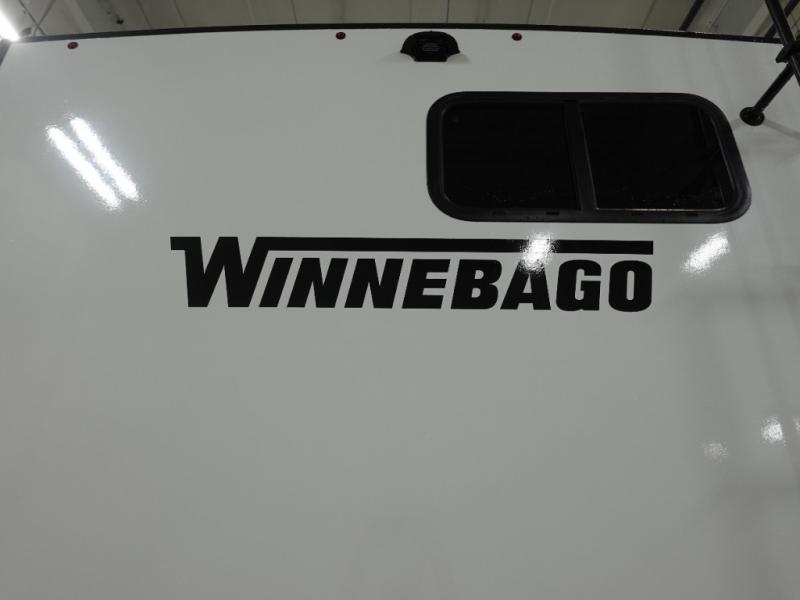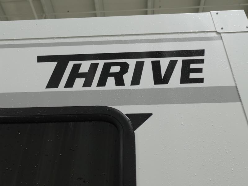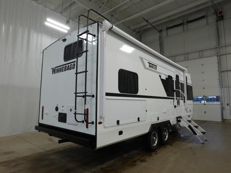 With any Thrive travel trailer by Winnebago, you can camp with functionality, comfort, and convenience! The tinted and frameless front window will be the first thing that catches your eye, and the fiberglass sidewalls with Azdel Onboard provide a durable trailer made to last. There is also an exterior ladder, along with front radius profile lights, power stabilizer jacks, and a powered awning with LED lighting to name a few exterior features. You will stay powered up by the 30-amp power cord and 200-watt solar panel, plus there is a tankless water heater for endless hot showers. Inside, you'll love the custom Winnebago furniture, carpetless side outs, molded fiberglass countertops, and residential recessed ceiling lights to keep your space well lit!