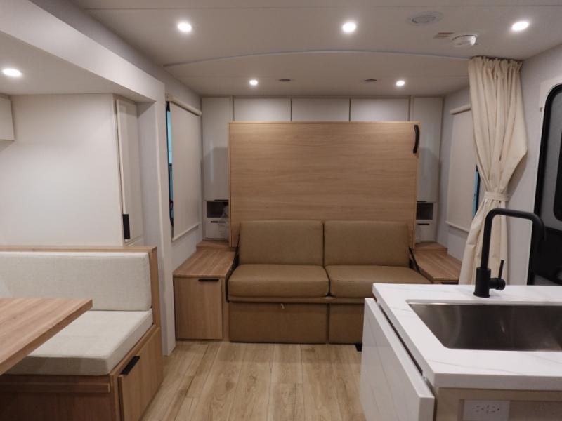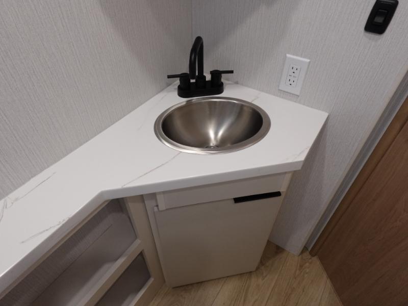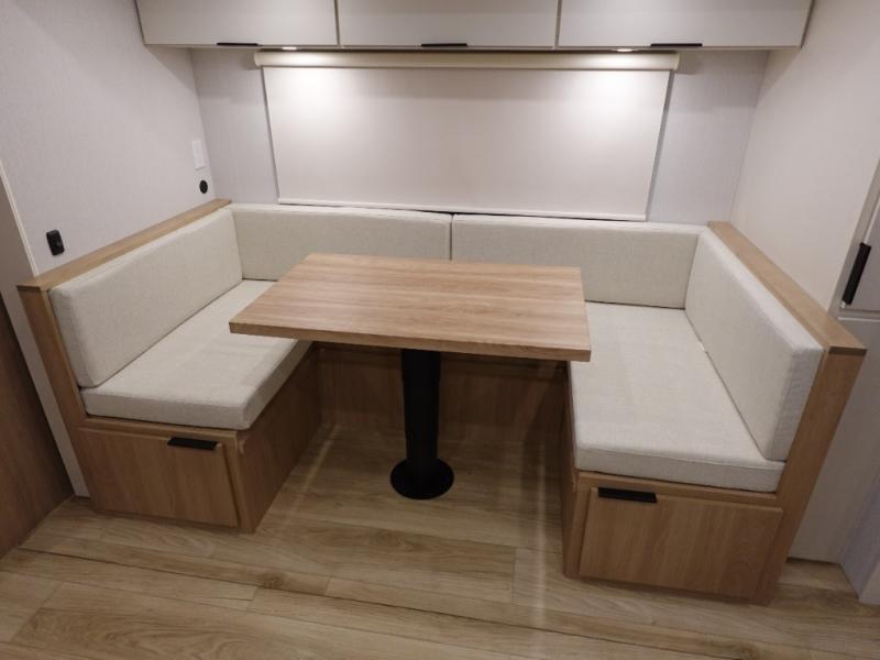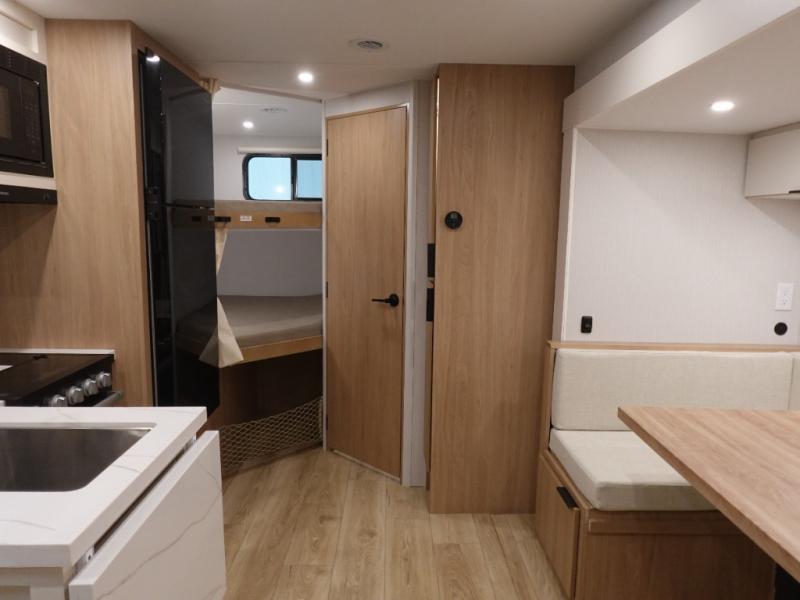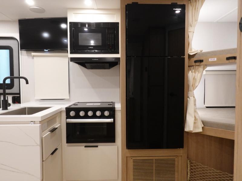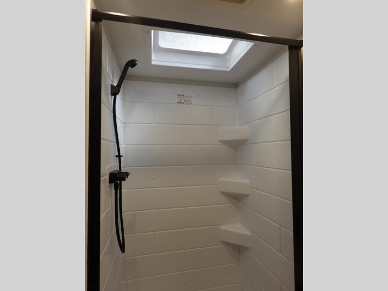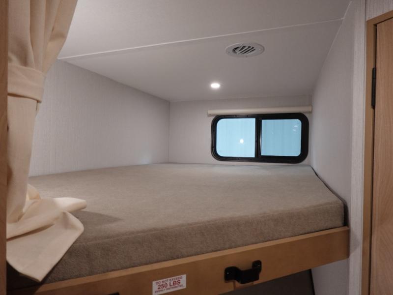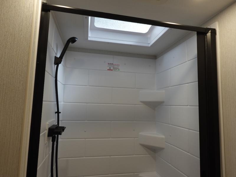If you enjoy camping with a larger group, this travel trailer with double-size bunks is sure to be a fit! There is also a U-shaped dinette within a slide for more sleeping space, and you'll find the front king-size Murphy bed to be very versatile. A recessed three burner cooktop with an oven will let you make meals each day, and the 10.6 cu. ft. 12V refrigerator will keep your cold items fresh. There is also a countertop extension, giving you more space to prep meals. The full bath includes a power vent fan and a shower skylight that will give you additional lighting and extra head room as you get ready each day!