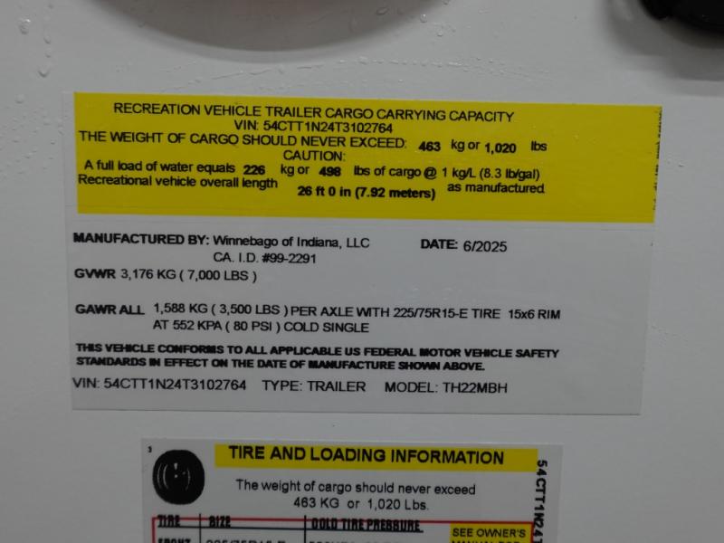 New 2026 Winnebago Thrive 22MBH Travel Trailer
