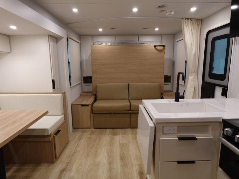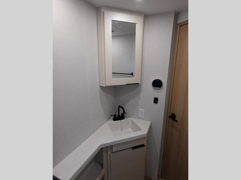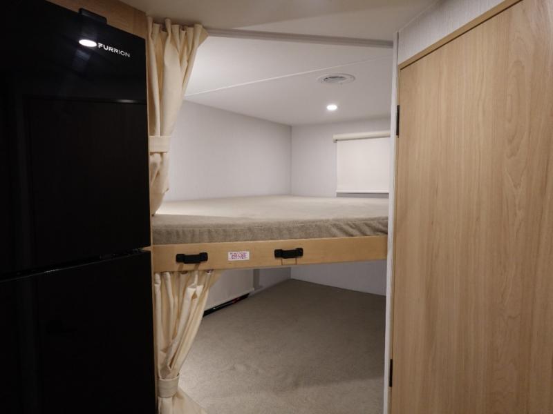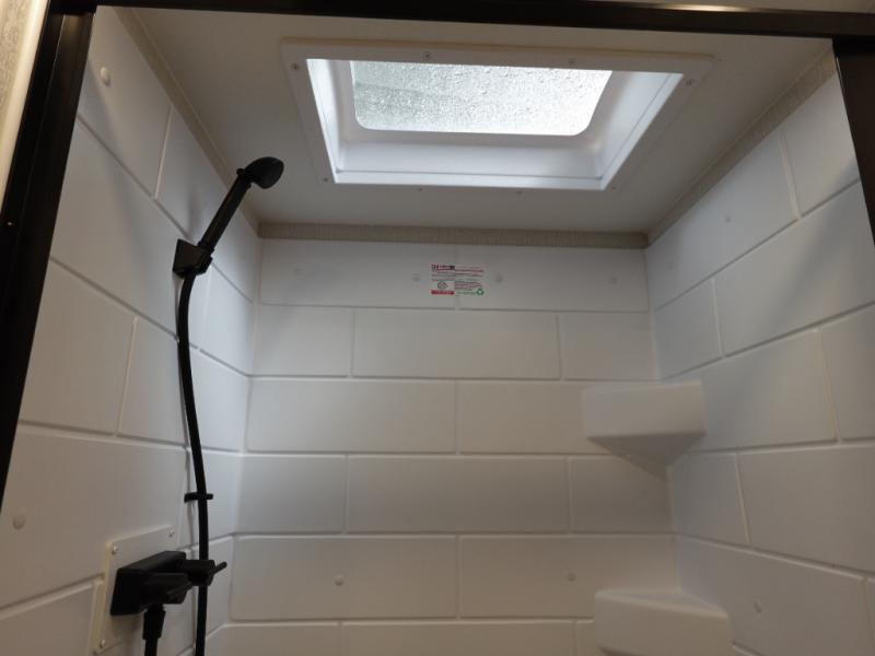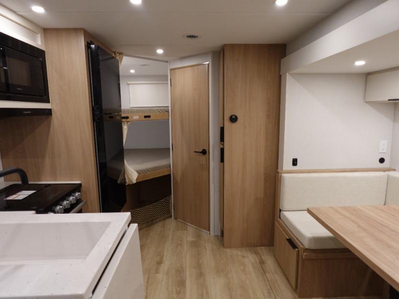 If you enjoy camping with a larger group, this travel trailer with double-size bunks is sure to be a fit! There is also a U-shaped dinette within a slide for more sleeping space, and you'll find the front king-size Murphy bed to be very versatile. A recessed three burner cooktop with an oven will let you make meals each day, and the 10.6 cu. ft. 12V refrigerator will keep your cold items fresh. There is also a countertop extension, giving you more space to prep meals. The full bath includes a power vent fan and a shower skylight that will give you additional lighting and extra head room as you get ready each day!