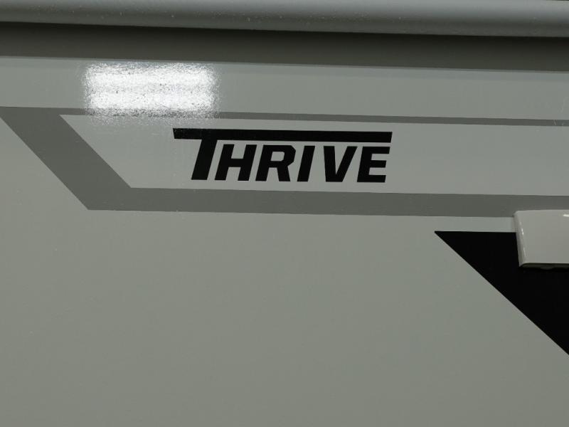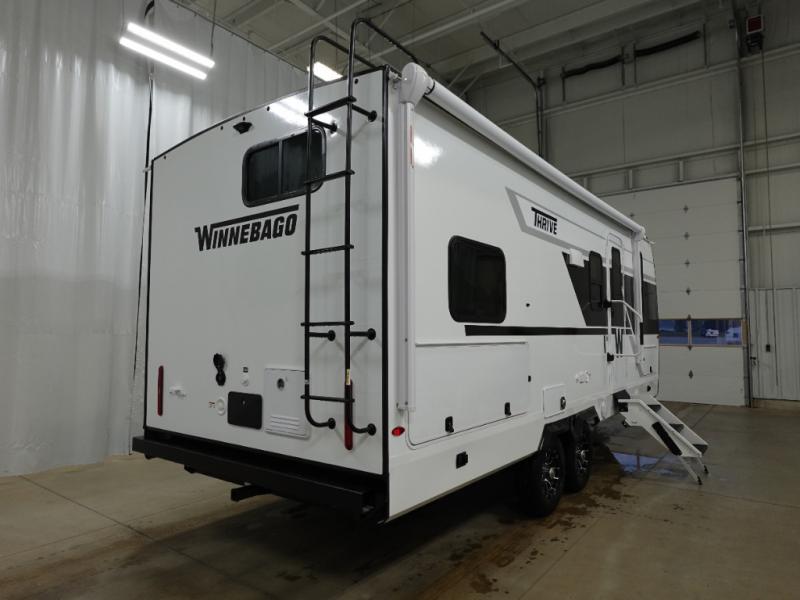 With any Thrive travel trailer by Winnebago, you can camp with functionality, comfort, and convenience! The tinted and frameless front window will be the first thing that catches your eye, and the fiberglass sidewalls with Azdel Onboard provide a durable trailer made to last. There is also an exterior ladder, along with front radius profile lights, power stabilizer jacks, and a powered awning with LED lighting to name a few exterior features. You will stay powered up by the 30-amp power cord and 200-watt solar panel, plus there is a tankless water heater for endless hot showers. Inside, you'll love the custom Winnebago furniture, carpetless side outs, molded fiberglass countertops, and residential recessed ceiling lights to keep your space well lit!