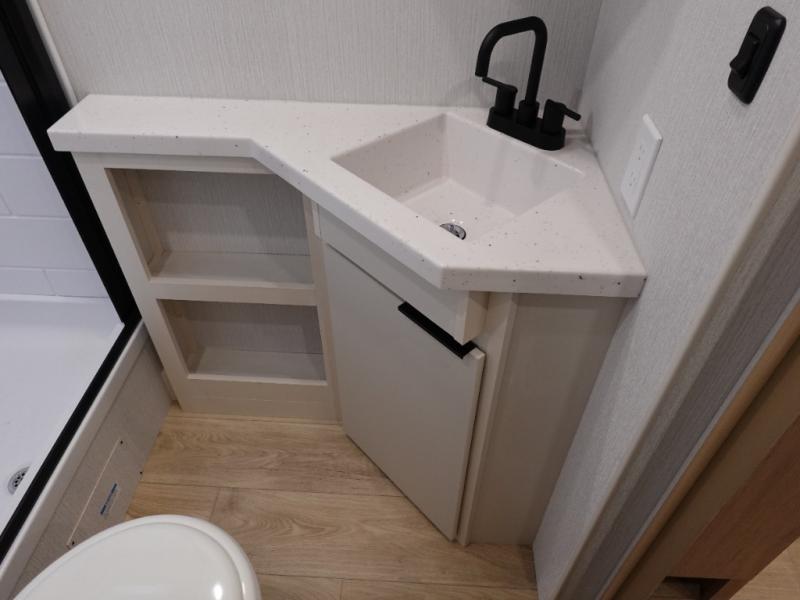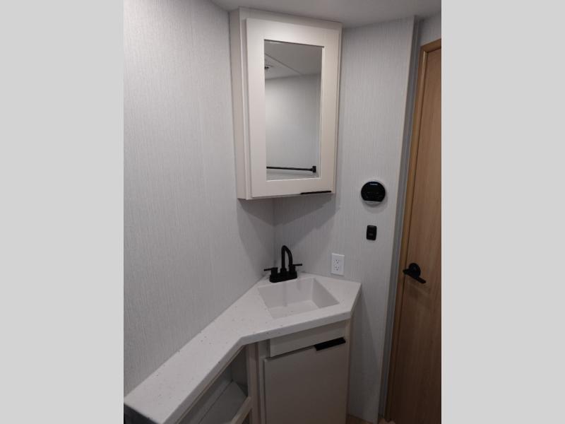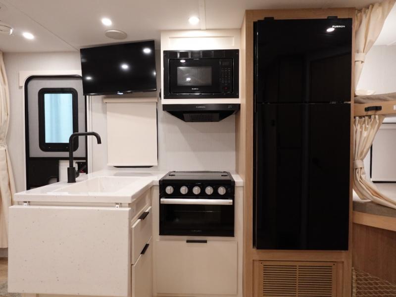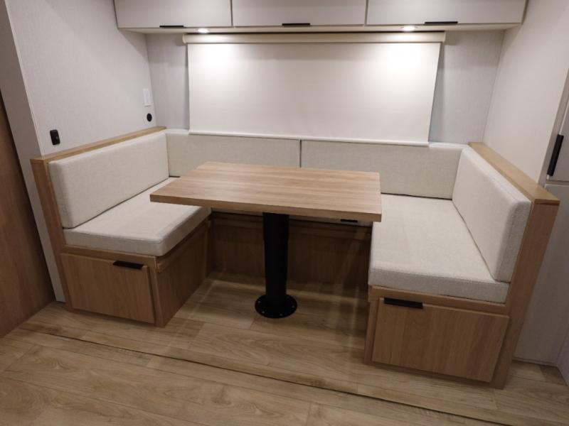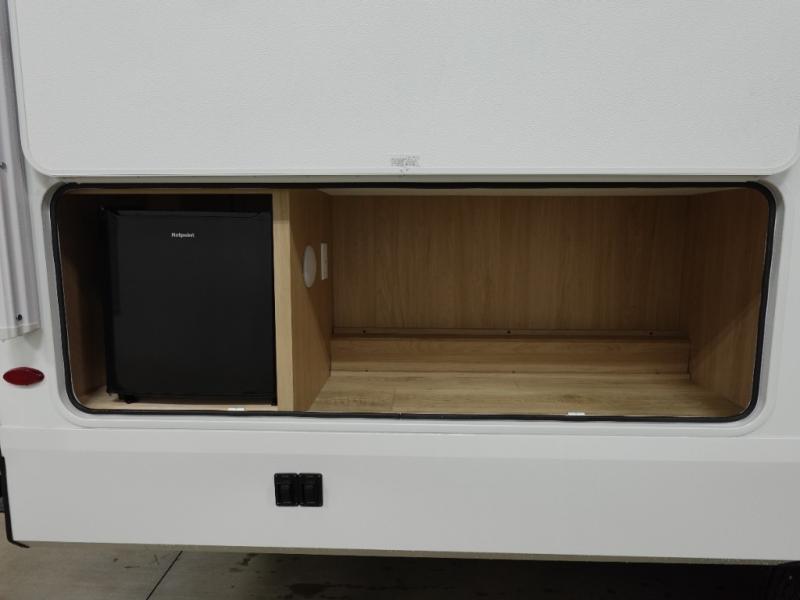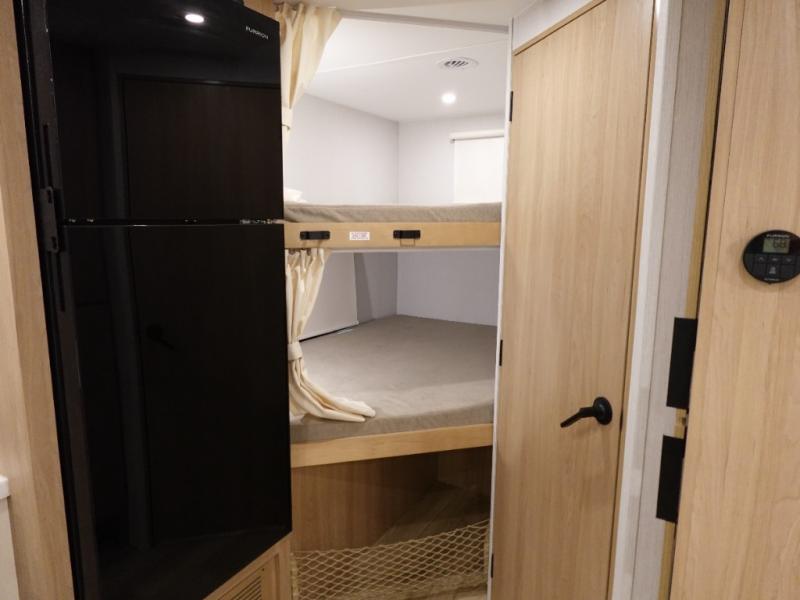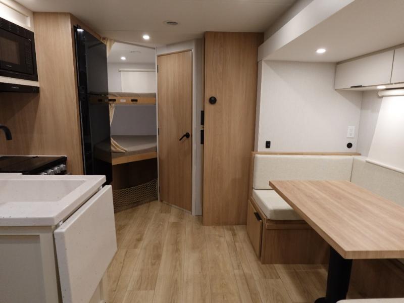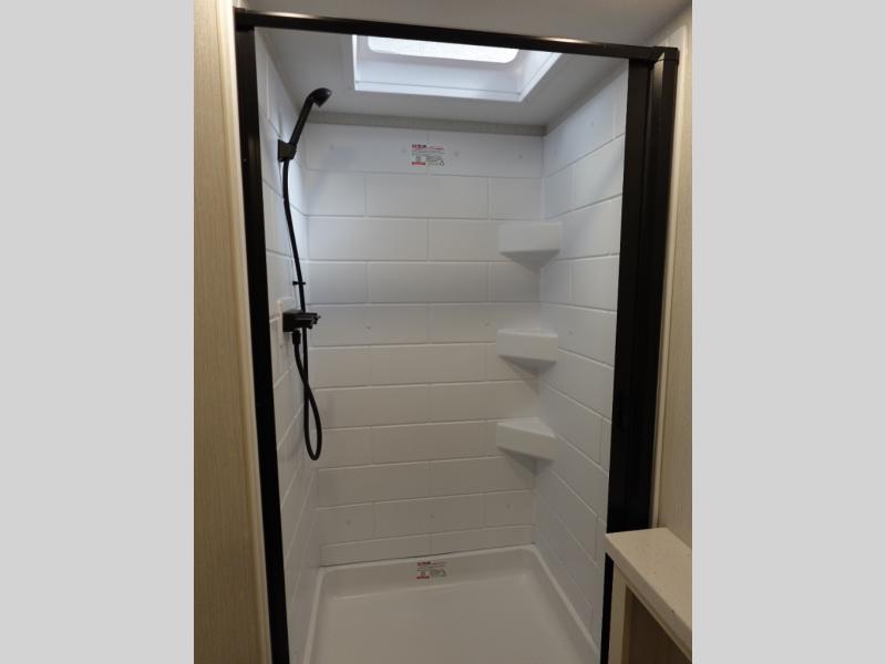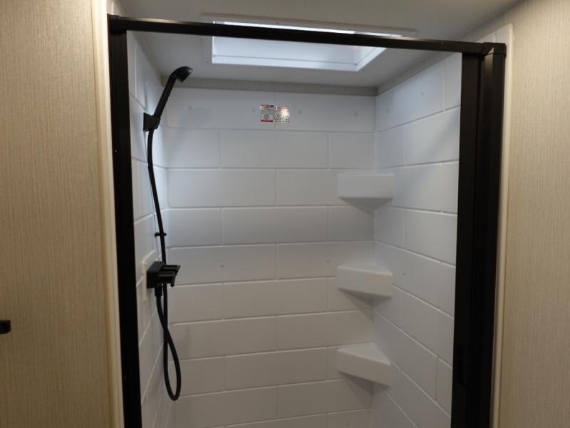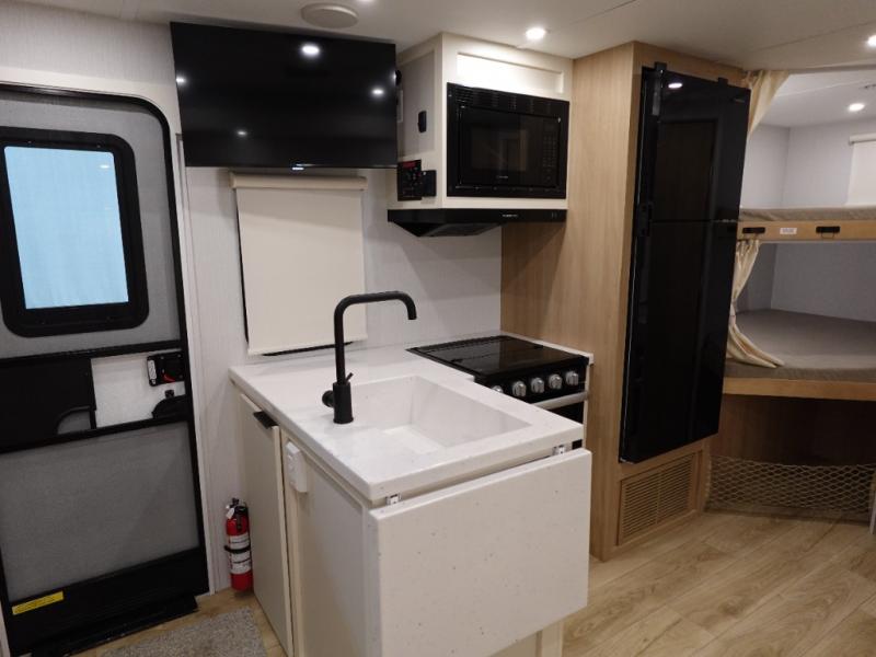 If you enjoy camping with a larger group, this travel trailer with double-size bunks is sure to be a fit! There is also a U-shaped dinette within a slide for more sleeping space, and you'll find the front king-size Murphy bed to be very versatile. A recessed three burner cooktop with an oven will let you make meals each day, and the 10.6 cu. ft. 12V refrigerator will keep your cold items fresh. There is also a countertop extension, giving you more space to prep meals. The full bath includes a power vent fan and a shower skylight that will give you additional lighting and extra head room as you get ready each day!