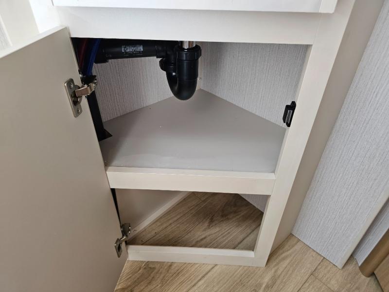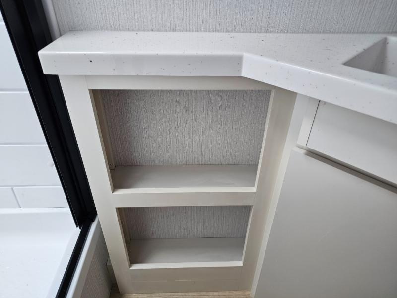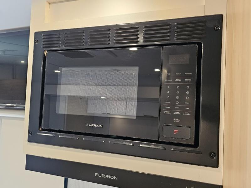 Microwave and molded fiberglass countertops for durability and easy cleaning