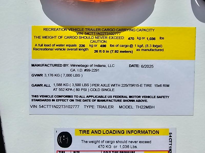 New 2026 Winnebago Thrive 22MBH Travel Trailer