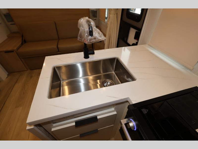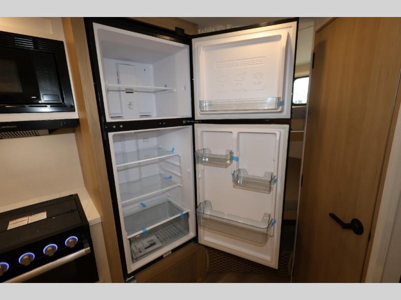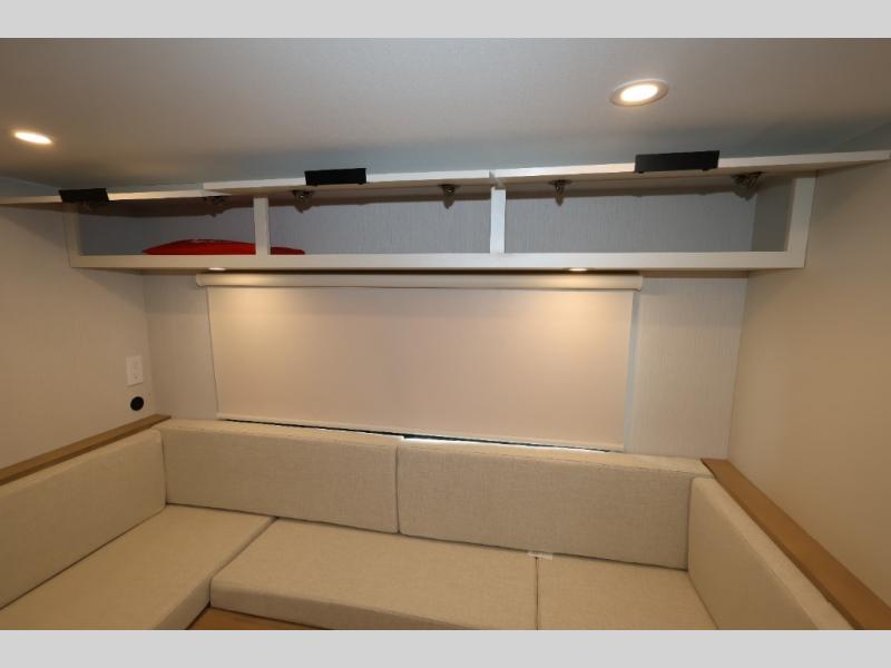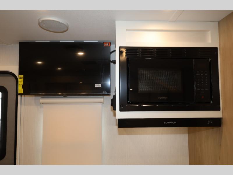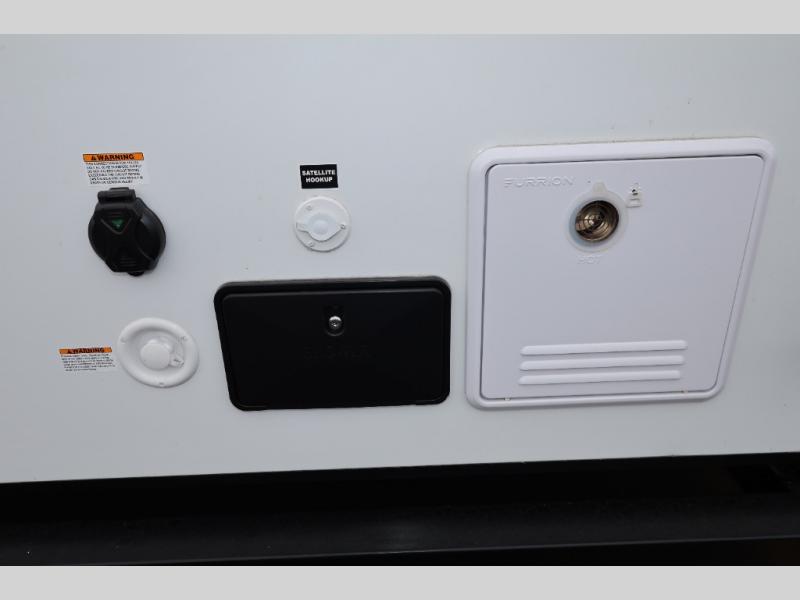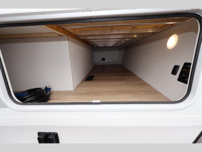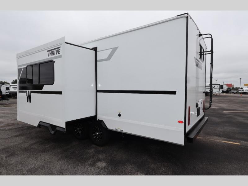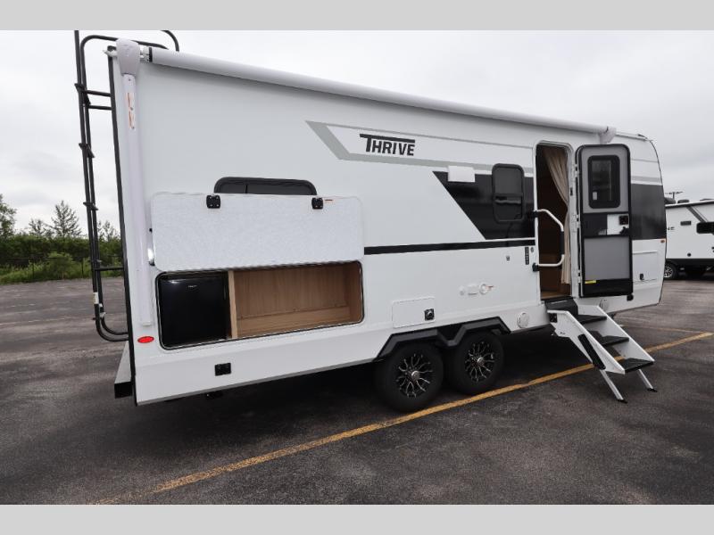 With any Thrive travel trailer by Winnebago, you can camp with functionality, comfort, and convenience! The tinted and frameless front window will be the first thing that catches your eye, and the fiberglass sidewalls with Azdel Onboard provide a durable trailer made to last. There is also an exterior ladder, along with front radius profile lights, power stabilizer jacks, and a powered awning with LED lighting to name a few exterior features. You will stay powered up by the 30-amp power cord and 200-watt solar panel, plus there is a tankless water heater for endless hot showers. Inside, you'll love the custom Winnebago furniture, carpetless side outs, molded fiberglass countertops, and residential recessed ceiling lights to keep your space well lit!