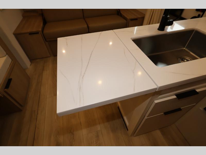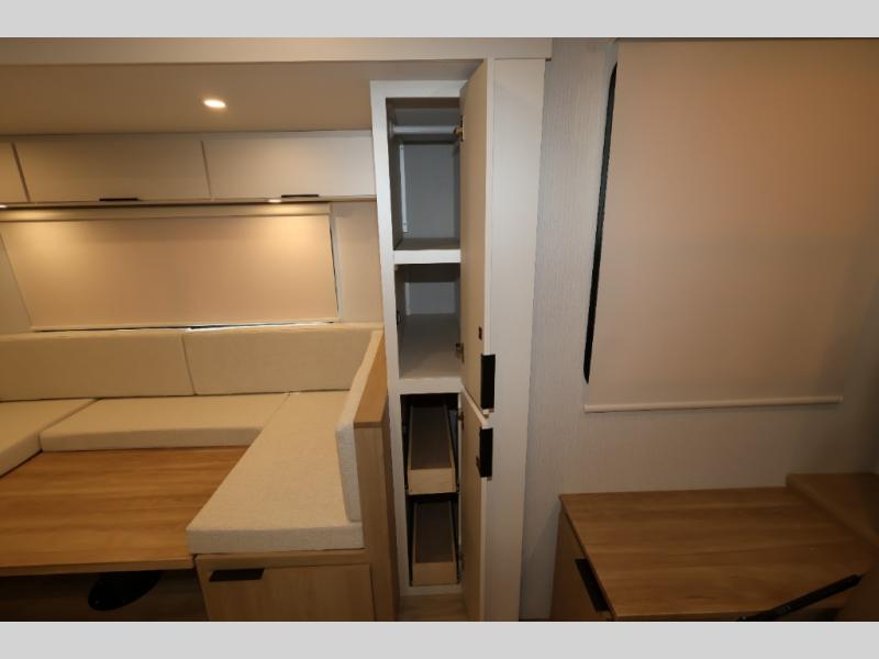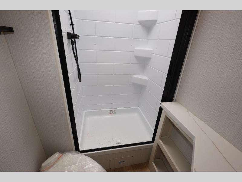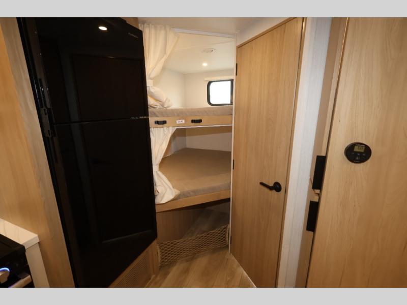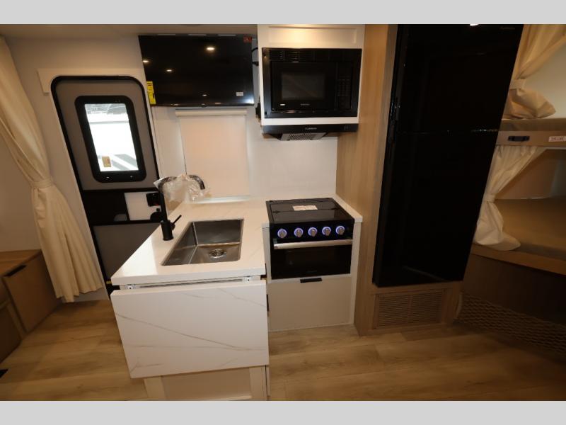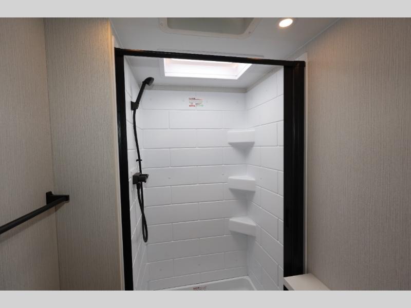 If you enjoy camping with a larger group, this travel trailer with double-size bunks is sure to be a fit! There is also a U-shaped dinette within a slide for more sleeping space, and you'll find the front king-size Murphy bed to be very versatile. A recessed three burner cooktop with an oven will let you make meals each day, and the 10.6 cu. ft. 12V refrigerator will keep your cold items fresh. There is also a countertop extension, giving you more space to prep meals. The full bath includes a power vent fan and a shower skylight that will give you additional lighting and extra head room as you get ready each day!