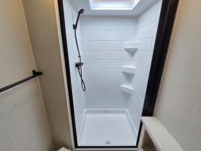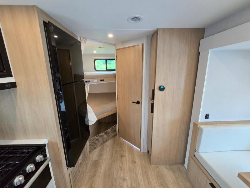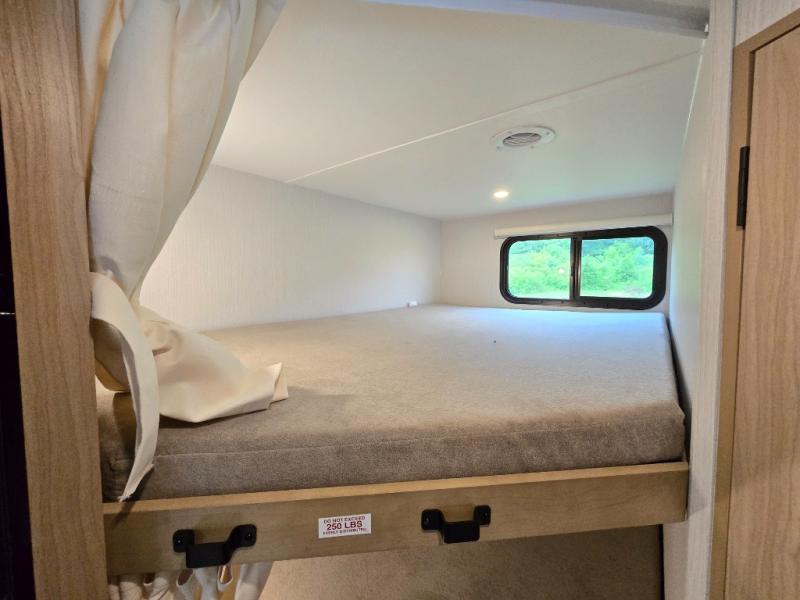 If you enjoy camping with a larger group, this travel trailer with double-size bunks is sure to be a fit! There is also a U-shaped dinette within a slide for more sleeping space, and you'll find the front king-size Murphy bed to be very versatile. A recessed three burner cooktop with an oven will let you make meals each day, and the 10.6 cu. ft. 12V refrigerator will keep your cold items fresh. There is also a countertop extension, giving you more space to prep meals. The full bath includes a power vent fan and a shower skylight that will give you additional lighting and extra head room as you get ready each day!