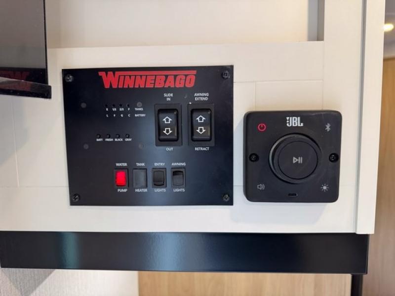 With any Thrive travel trailer by Winnebago, you can camp with functionality, comfort, and convenience! The tinted and frameless front window will be the first thing that catches your eye, and the fiberglass sidewalls with Azdel Onboard provide a durable trailer made to last. There is also an exterior ladder, along with front radius profile lights, power stabilizer jacks, and a powered awning with LED lighting to name a few exterior features. You will stay powered up by the 30-amp power cord and 200-watt solar panel, plus there is a tankless water heater for endless hot showers. Inside, you'll love the custom Winnebago furniture, carpetless side outs, molded fiberglass countertops, and residential recessed ceiling lights to keep your space well lit!