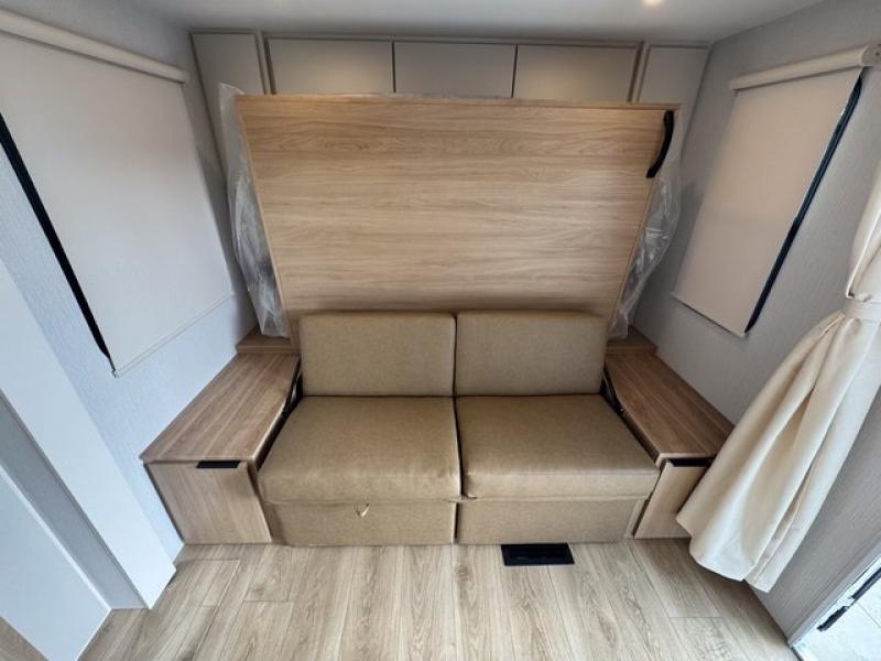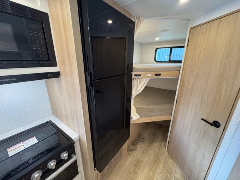 If you enjoy camping with a larger group, this travel trailer with double-size bunks is sure to be a fit! There is also a U-shaped dinette within a slide for more sleeping space, and you'll find the front king-size Murphy bed to be very versatile. A recessed three burner cooktop with an oven will let you make meals each day, and the 10.6 cu. ft. 12V refrigerator will keep your cold items fresh. There is also a countertop extension, giving you more space to prep meals. The full bath includes a power vent fan and a shower skylight that will give you additional lighting and extra head room as you get ready each day!
