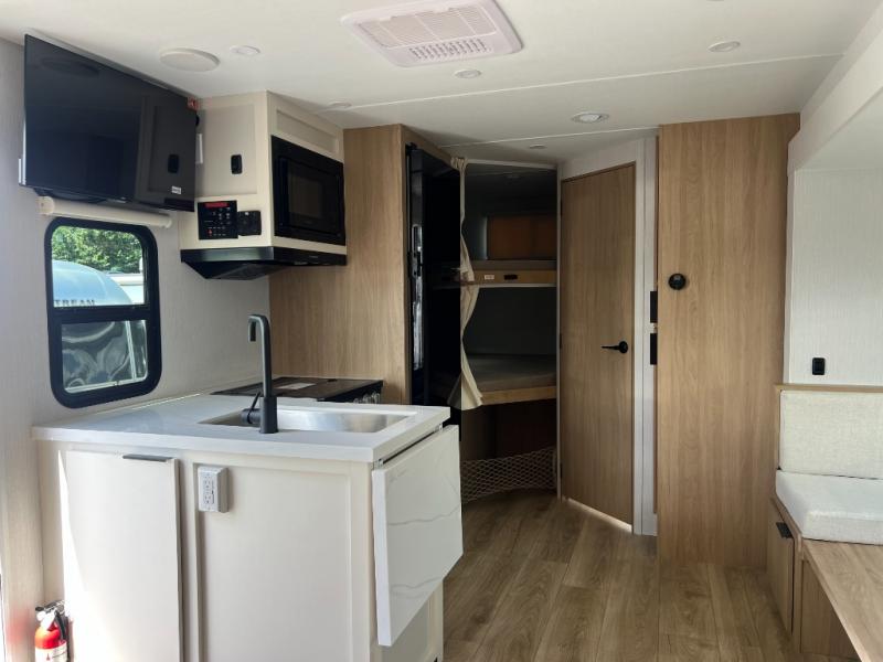 If you enjoy camping with a larger group, this travel trailer with double-size bunks is sure to be a fit! There is also a U-shaped dinette within a slide for more sleeping space, and you'll find the front king-size Murphy bed to be very versatile. A recessed three burner cooktop with an oven will let you make meals each day, and the 10.6 cu. ft. 12V refrigerator will keep your cold items fresh. There is also a countertop extension, giving you more space to prep meals. The full bath includes a power vent fan and a shower skylight that will give you additional lighting and extra head room as you get ready each day!