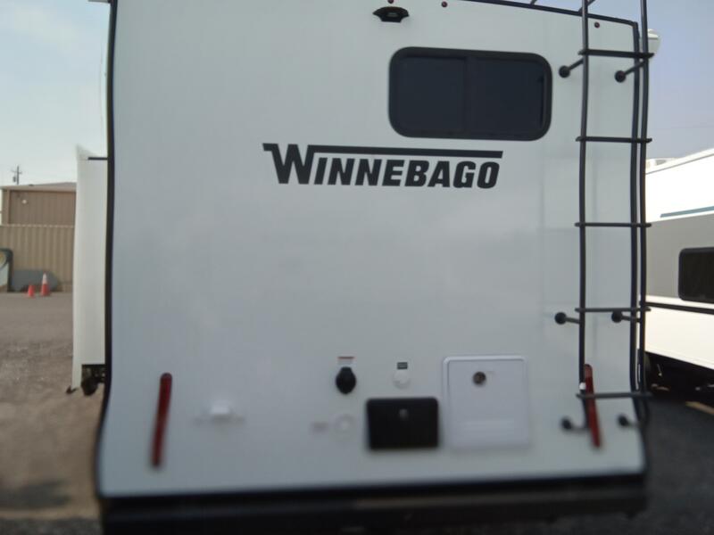 With any Thrive travel trailer by Winnebago, you can camp with functionality, comfort, and convenience! The tinted and frameless front window will be the first thing that catches your eye, and the fiberglass sidewalls with Azdel Onboard provide a durable trailer made to last. There is also an exterior ladder, along with front radius profile lights, power stabilizer jacks, and a powered awning with LED lighting to name a few exterior features. You will stay powered up by the 30-amp power cord and 200-watt solar panel, plus there is a tankless water heater for endless hot showers. Inside, you'll love the custom Winnebago furniture, carpetless side outs, molded fiberglass countertops, and residential recessed ceiling lights to keep your space well lit!