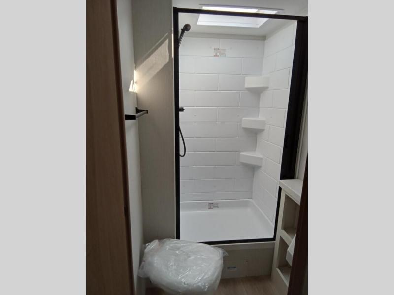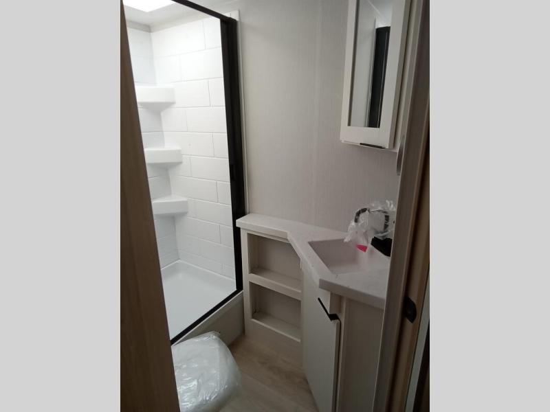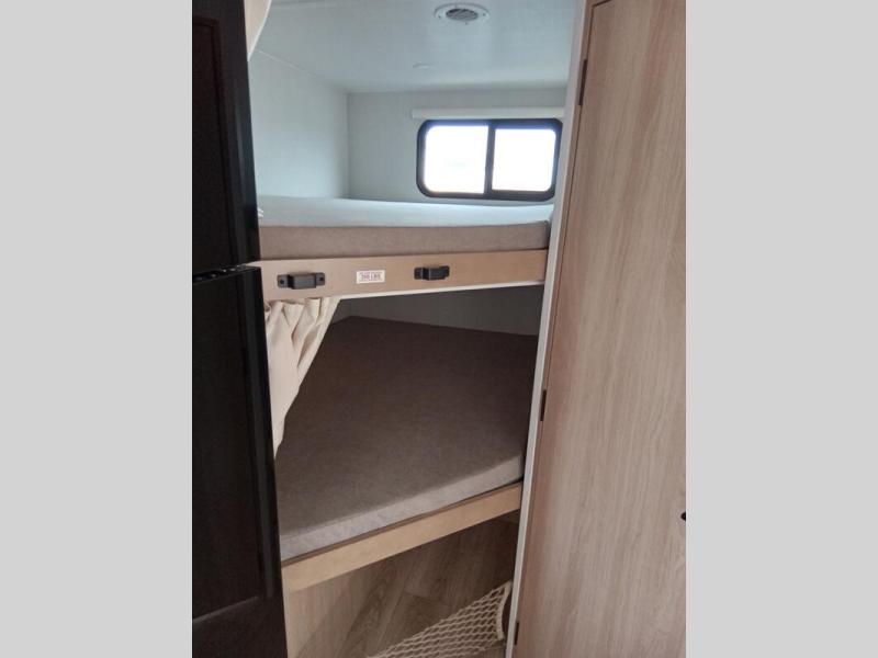 If you enjoy camping with a larger group, this travel trailer with double-size bunks is sure to be a fit! There is also a U-shaped dinette within a slide for more sleeping space, and you'll find the front king-size Murphy bed to be very versatile. A recessed three burner cooktop with an oven will let you make meals each day, and the 10.6 cu. ft. 12V refrigerator will keep your cold items fresh. There is also a countertop extension, giving you more space to prep meals. The full bath includes a power vent fan and a shower skylight that will give you additional lighting and extra head room as you get ready each day!