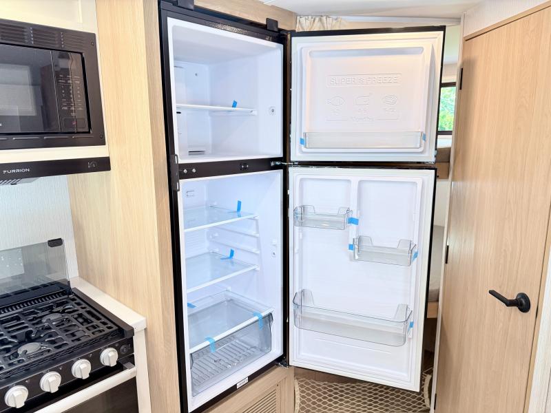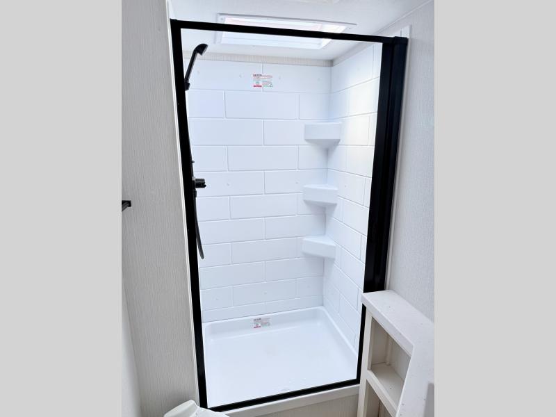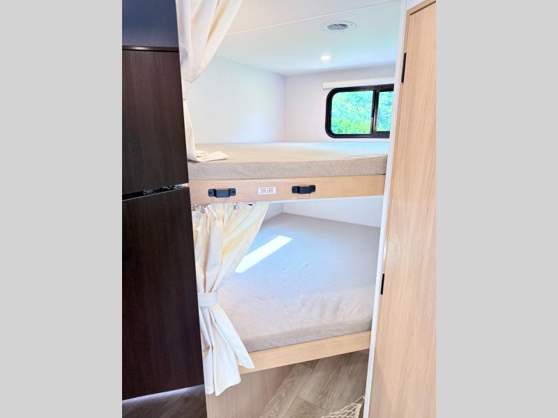 If you enjoy camping with a larger group, this travel trailer with double-size bunks is sure to be a fit! There is also a U-shaped dinette within a slide for more sleeping space, and you'll find the front king-size Murphy bed to be very versatile. A recessed three burner cooktop with an oven will let you make meals each day, and the 10.6 cu. ft. 12V refrigerator will keep your cold items fresh. There is also a countertop extension, giving you more space to prep meals. The full bath includes a power vent fan and a shower skylight that will give you additional lighting and extra head room as you get ready each day!