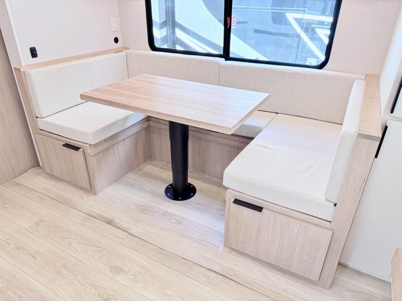 With any Thrive travel trailer by Winnebago, you can camp with functionality, comfort, and convenience! The tinted and frameless front window will be the first thing that catches your eye, and the fiberglass sidewalls with Azdel Onboard provide a durable trailer made to last. There is also an exterior ladder, along with front radius profile lights, power stabilizer jacks, and a powered awning with LED lighting to name a few exterior features. You will stay powered up by the 30-amp power cord and 200-watt solar panel, plus there is a tankless water heater for endless hot showers. Inside, you'll love the custom Winnebago furniture, carpetless side outs, molded fiberglass countertops, and residential recessed ceiling lights to keep your space well lit!