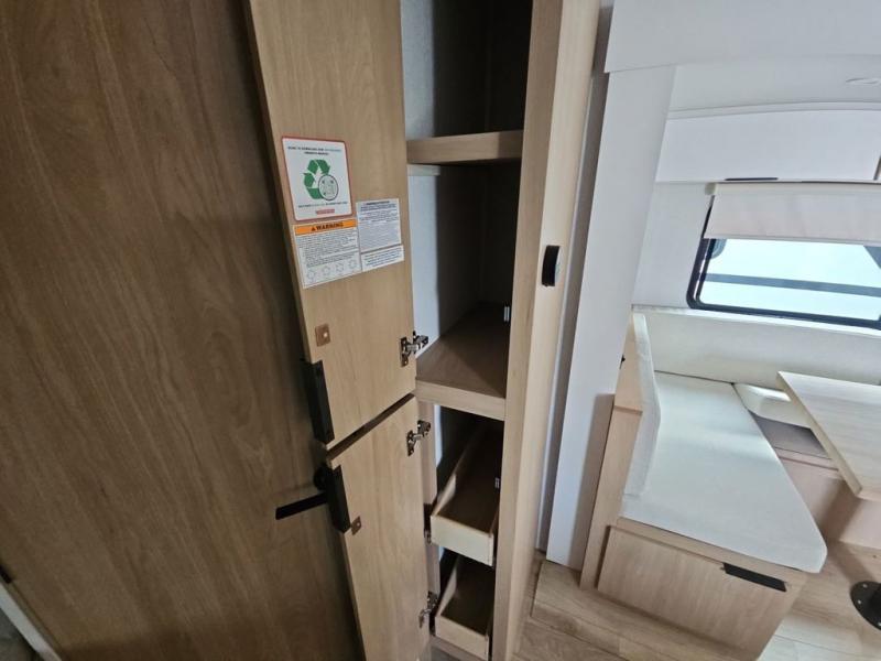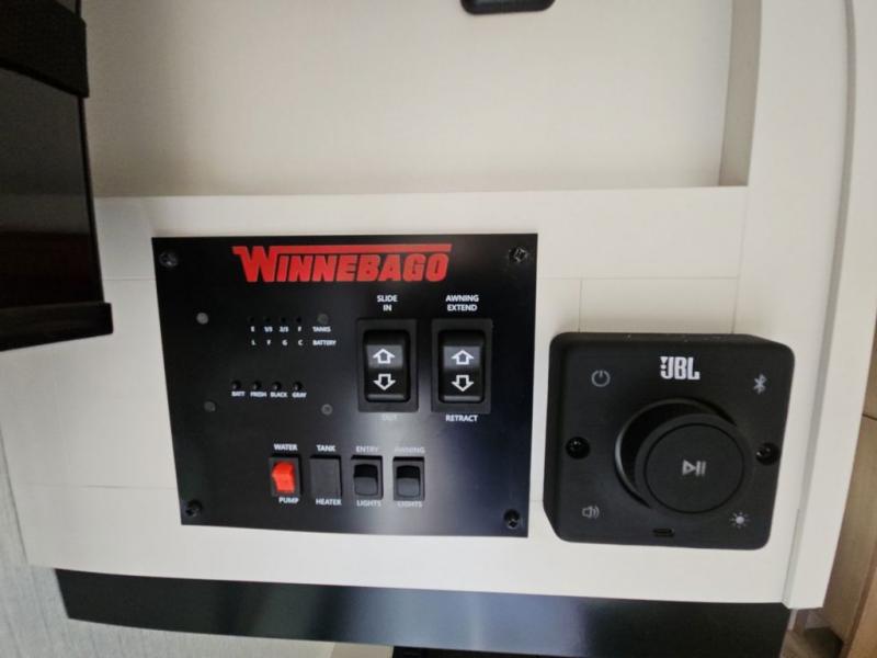 With any Thrive travel trailer by Winnebago, you can camp with functionality, comfort, and convenience! The large front viewing window with strike guard will be the first thing that catches your eye, and the fiberglass sidewalls with Azdel Onboard provide a durable trailer made to last. There is also an exterior ladder, along with front radius profile lights, power stabilizer jacks, and a powered awning with LED lighting to name a few exterior features. You will stay powered up by the 30-amp power cord and 200-watt solar panel, plus there is a tankless water heater for endless hot showers. Inside, you'll love the custom Winnebago furniture, carpetless side outs, molded fiberglass countertops, and residential recessed ceiling lights to keep your space well lit!