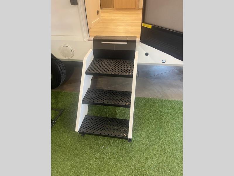 With any Thrive travel trailer by Winnebago, you can camp with functionality, comfort, and convenience! The large front viewing window with strike guard will be the first thing that catches your eye, and the fiberglass sidewalls with Azdel Onboard provide a durable trailer made to last. There is also an exterior ladder, along with front radius profile lights, power stabilizer jacks, and a powered awning with LED lighting to name a few exterior features. You will stay powered up by the 30-amp power cord and 200-watt solar panel, plus there is a tankless water heater for endless hot showers. Inside, you'll love the custom Winnebago furniture, carpetless side outs, molded fiberglass countertops, and residential recessed ceiling lights to keep your space well lit!