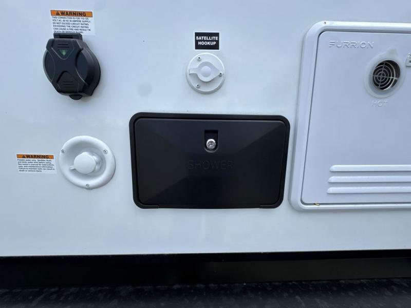 With any Thrive travel trailer by Winnebago, you can camp with functionality, comfort, and convenience! The large front viewing window with strike guard will be the first thing that catches your eye, and the fiberglass sidewalls with Azdel Onboard provide a durable trailer made to last. There is also an exterior ladder, along with front radius profile lights, power stabilizer jacks, and a powered awning with LED lighting to name a few exterior features. You will stay powered up by the 30-amp power cord and 200-watt solar panel, plus there is a tankless water heater for endless hot showers. Inside, you'll love the custom Winnebago furniture, carpetless side outs, molded fiberglass countertops, and residential recessed ceiling lights to keep your space well lit!