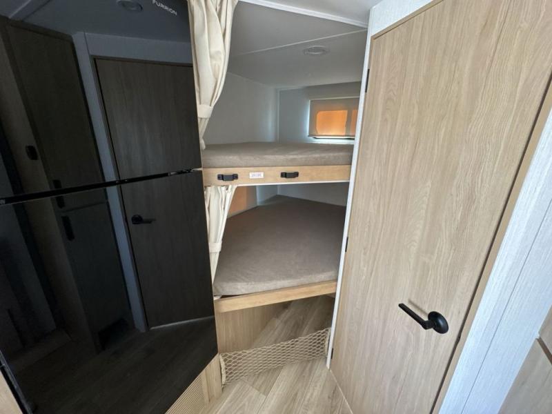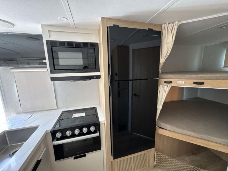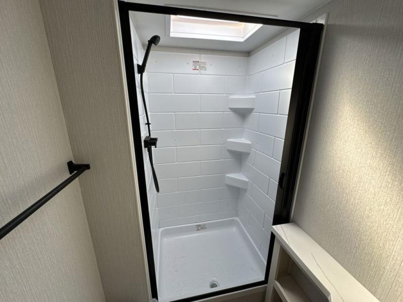 If you enjoy camping with a larger group, this travel trailer with double-size bunks is sure to be a fit! There is also a U-shaped dinette within a slide for more sleeping space, and you'll find the front Olympic Queen Murphy bed to be very versatile. A recessed three burner cooktop with an oven will let you make meals each day, and the 10.6 cu. ft. 12V refrigerator will keep your cold items fresh. There is also a countertop extension, giving you more space to prep meals. The full bath includes a power vent fan and a shower skylight that will give you additional lighting and extra head room as you get ready each day!