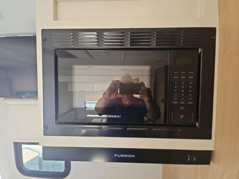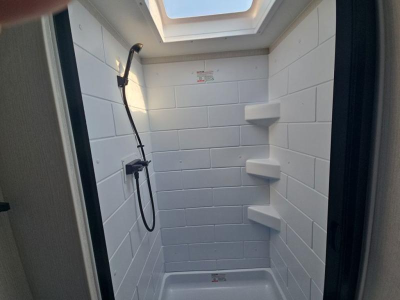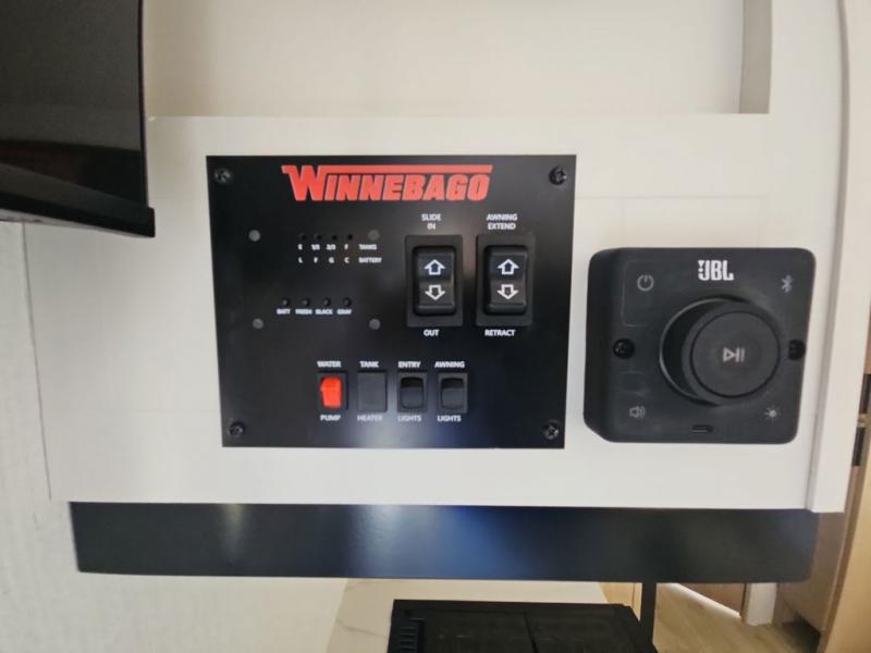 With any Thrive travel trailer by Winnebago, you can camp with functionality, comfort, and convenience! The large front viewing window with strike guard will be the first thing that catches your eye, and the fiberglass sidewalls with Azdel Onboard provide a durable trailer made to last. There is also an exterior ladder, along with front radius profile lights, power stabilizer jacks, and a powered awning with LED lighting to name a few exterior features. You will stay powered up by the 30-amp power cord and 200-watt solar panel, plus there is a tankless water heater for endless hot showers. Inside, you'll love the custom Winnebago furniture, carpetless side outs, molded fiberglass countertops, and residential recessed ceiling lights to keep your space well lit!