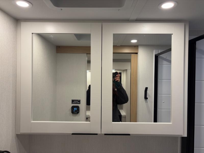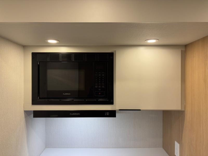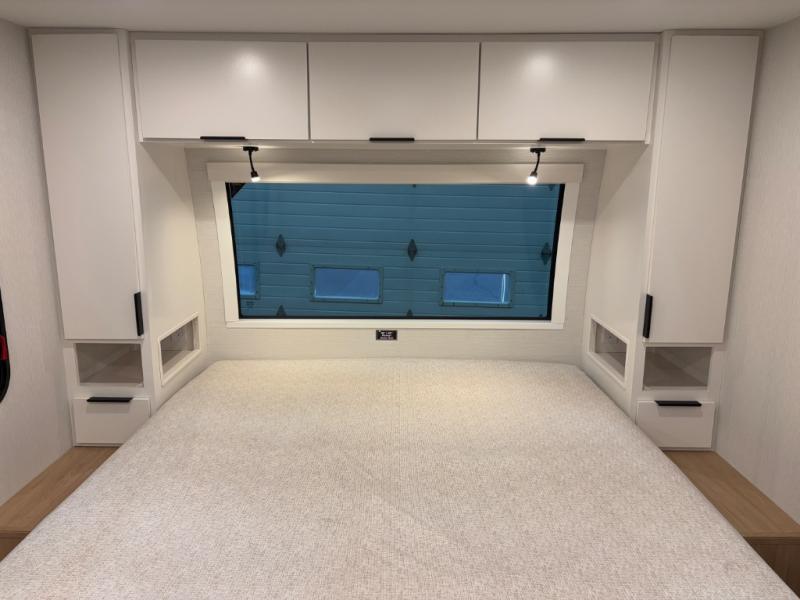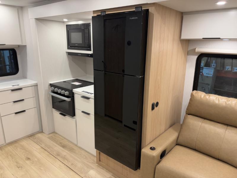 With any Thrive travel trailer by Winnebago, you can camp with functionality, comfort, and convenience! The large front viewing window with strike guard will be the first thing that catches your eye, and the fiberglass sidewalls with Azdel Onboard provide a durable trailer made to last. There is also an exterior ladder, along with front radius profile lights, power stabilizer jacks, and a powered awning with LED lighting to name a few exterior features. You will stay powered up by the 30-amp power cord and 200-watt solar panel, plus there is a tankless water heater for endless hot showers. Inside, you'll love the custom Winnebago furniture, carpetless side outs, molded fiberglass countertops, and residential recessed ceiling lights to keep your space well lit!