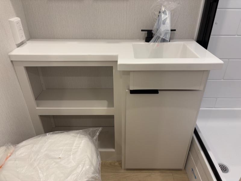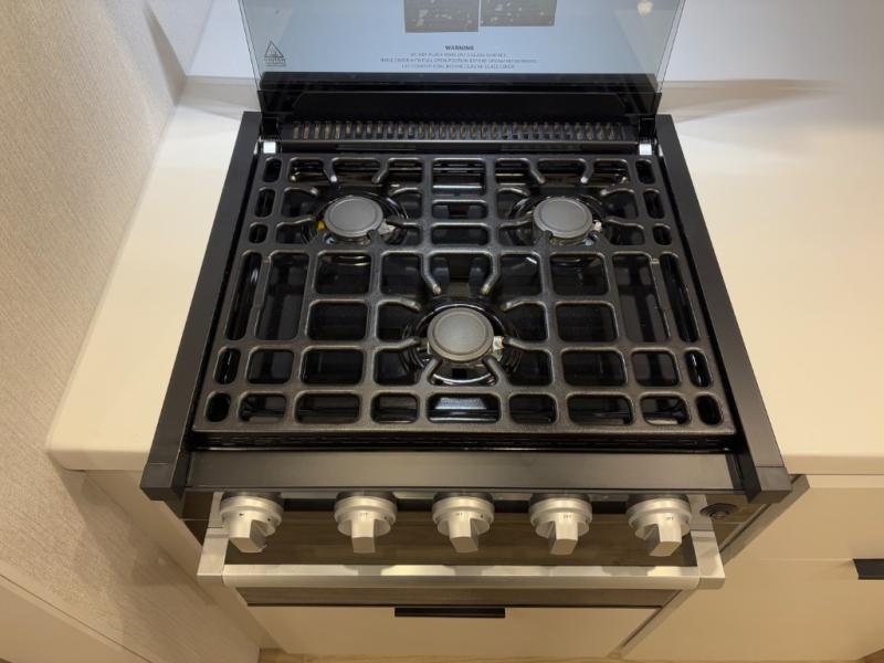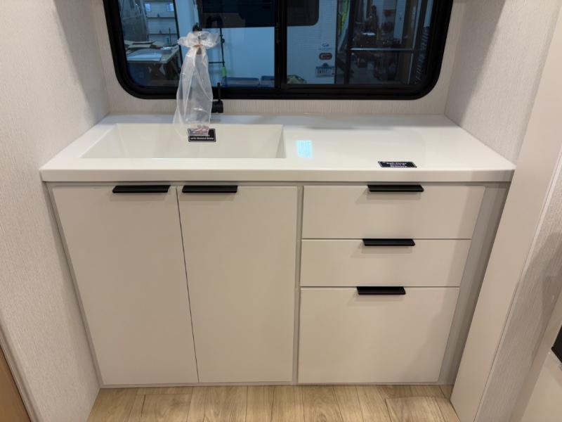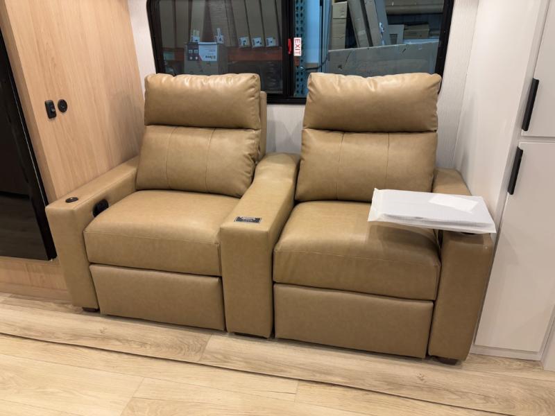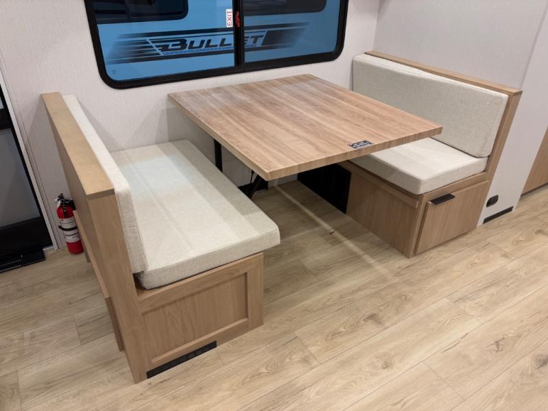 Have everything you need in a compact and well-equipped travel trailer. In the main area there is a large 42" x 82" U-shaped dinette with plenty of room to enjoy a meal, games or sharing stories. Across there is theater seating located in the slide-out that adds extra comfort and seating space. You can enjoy cooking every day from a quick pancake to your favorite casserole in the cooktop with oven and store leftovers in the 10.6 cu. ft. refrigerator. Moving forward you'll find convenient storage options such as the pantry with removable shelves. In the front you'll find a spacious 66" x 80" Olympic queen bed, on each side wardrobes for more storage.