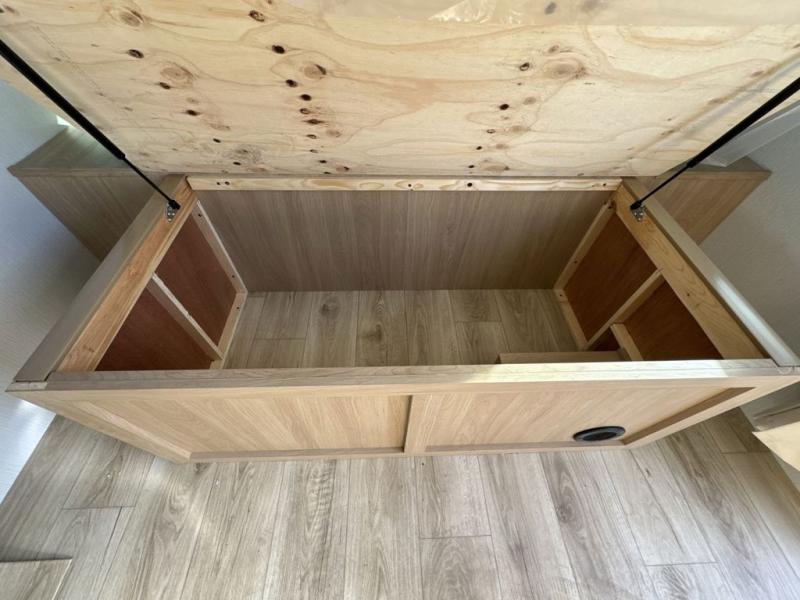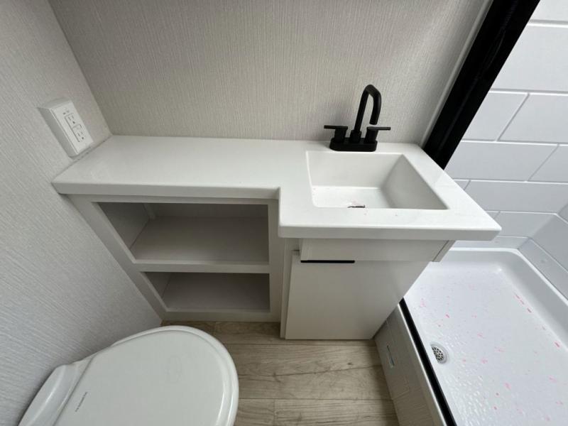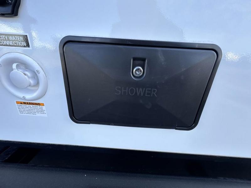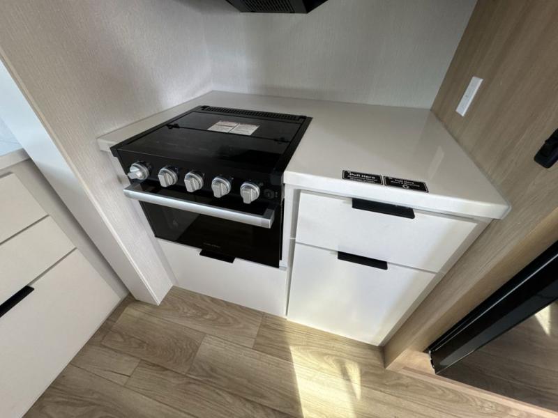 Have everything you need in a compact and well-equipped travel trailer. In the main area there is a large 42" x 82" U-shaped dinette with plenty of room to enjoy a meal, games or sharing stories. Across there is theater seating located in the slide-out that adds extra comfort and seating space. You can enjoy cooking every day from a quick pancake to your favorite casserole in the cooktop with oven and store leftovers in the 10.6 cu. ft. refrigerator. Moving forward you'll find convenient storage options such as the pantry with removable shelves. In the front you'll find a spacious 66" x 80" Olympic queen bed, on each side wardrobes for more storage.