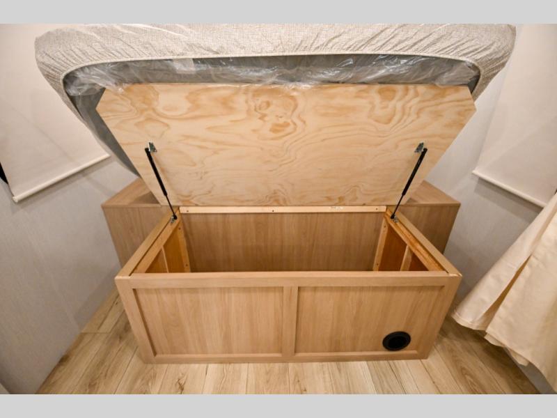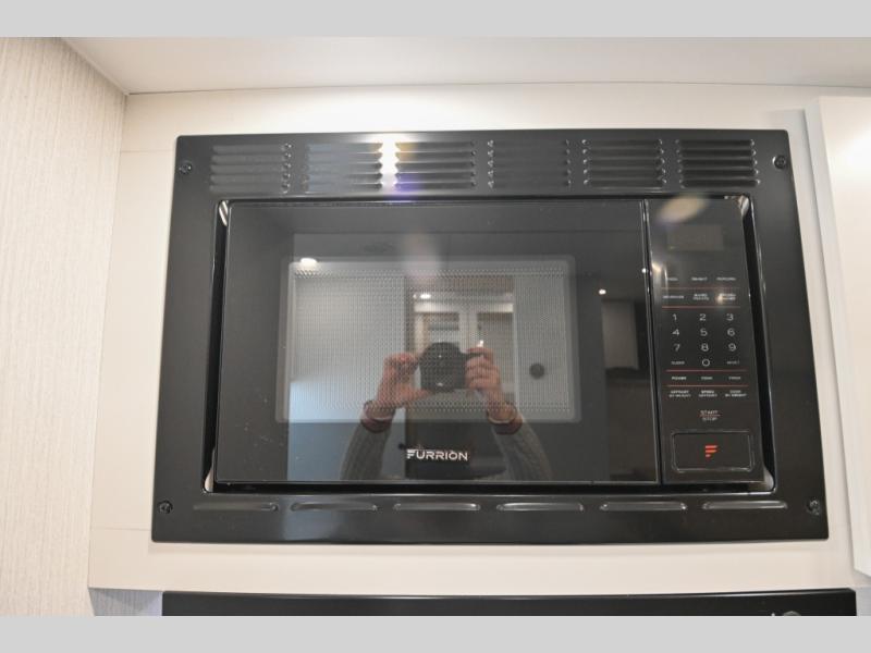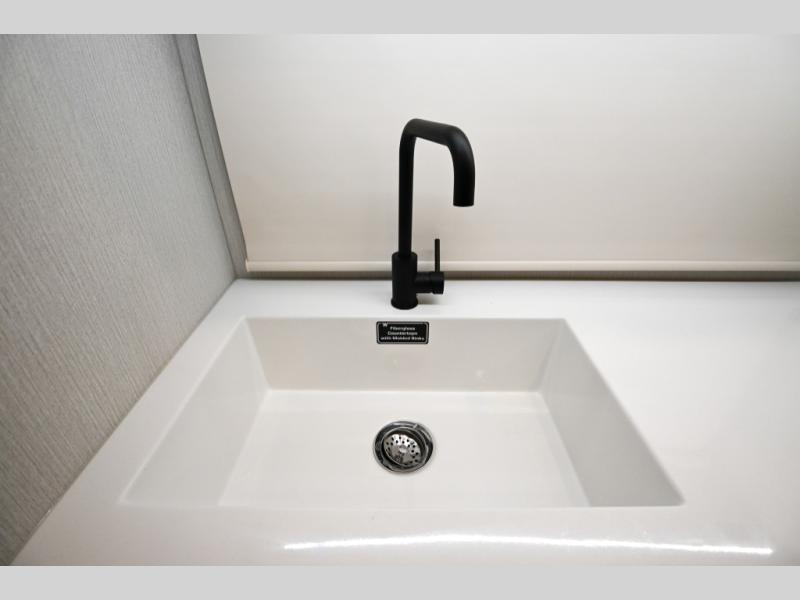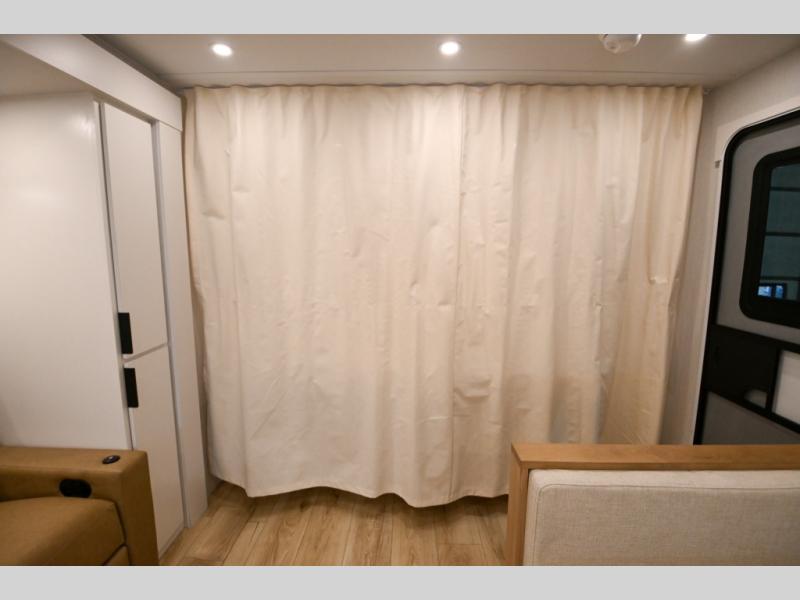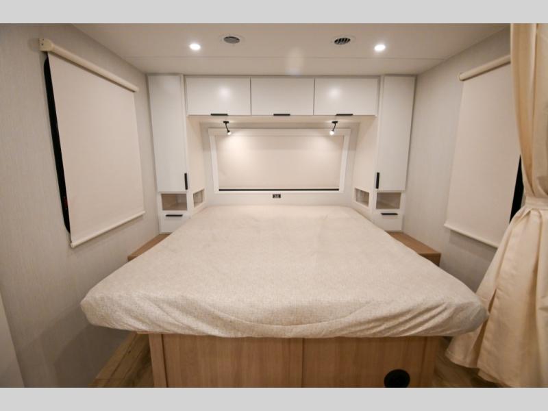 With any Thrive travel trailer by Winnebago, you can camp with functionality, comfort, and convenience! The large front viewing window with strike guard will be the first thing that catches your eye, and the fiberglass sidewalls with Azdel Onboard provide a durable trailer made to last. There is also an exterior ladder, along with front radius profile lights, power stabilizer jacks, and a powered awning with LED lighting to name a few exterior features. You will stay powered up by the 30-amp power cord and 200-watt solar panel, plus there is a tankless water heater for endless hot showers. Inside, you'll love the custom Winnebago furniture, carpetless side outs, molded fiberglass countertops, and residential recessed ceiling lights to keep your space well lit!