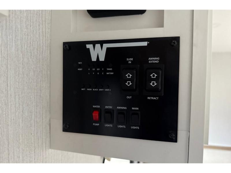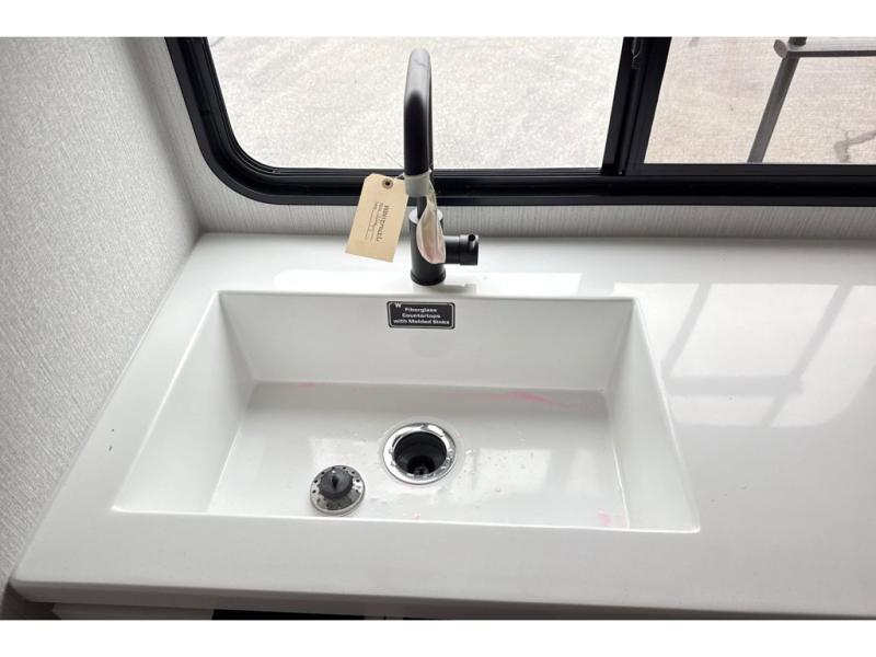 With any Thrive travel trailer by Winnebago, you can camp with functionality, comfort, and convenience! The large front viewing window with strike guard will be the first thing that catches your eye, and the fiberglass sidewalls with Azdel Onboard provide a durable trailer made to last. There is also an exterior ladder, along with front radius profile lights, power stabilizer jacks, and a powered awning with LED lighting to name a few exterior features. You will stay powered up by the 30-amp power cord and 200-watt solar panel, plus there is a tankless water heater for endless hot showers. Inside, you'll love the custom Winnebago furniture, carpetless side outs, molded fiberglass countertops, and residential recessed ceiling lights to keep your space well lit!