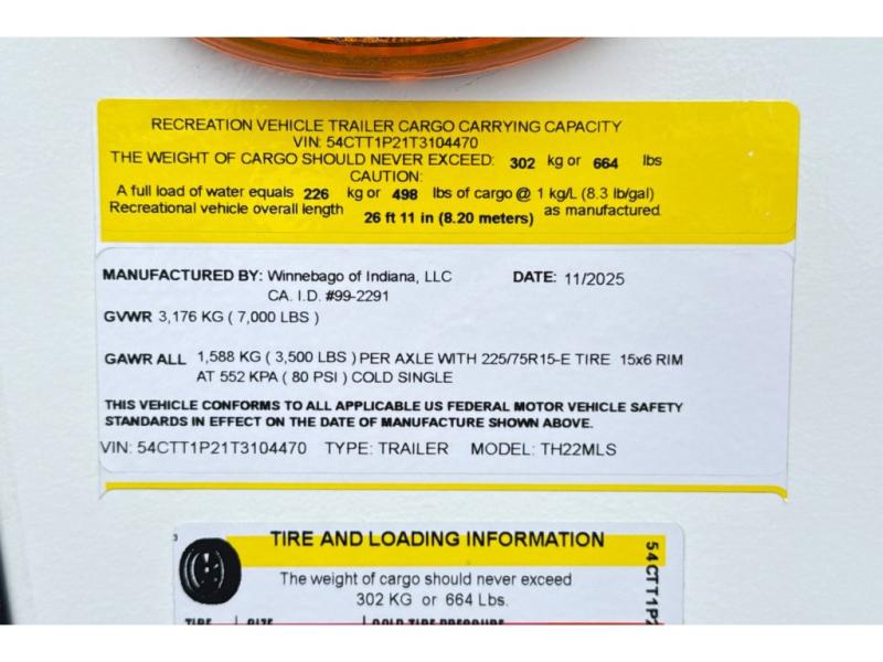 New 2026 Winnebago Thrive 22MLS Travel Trailer