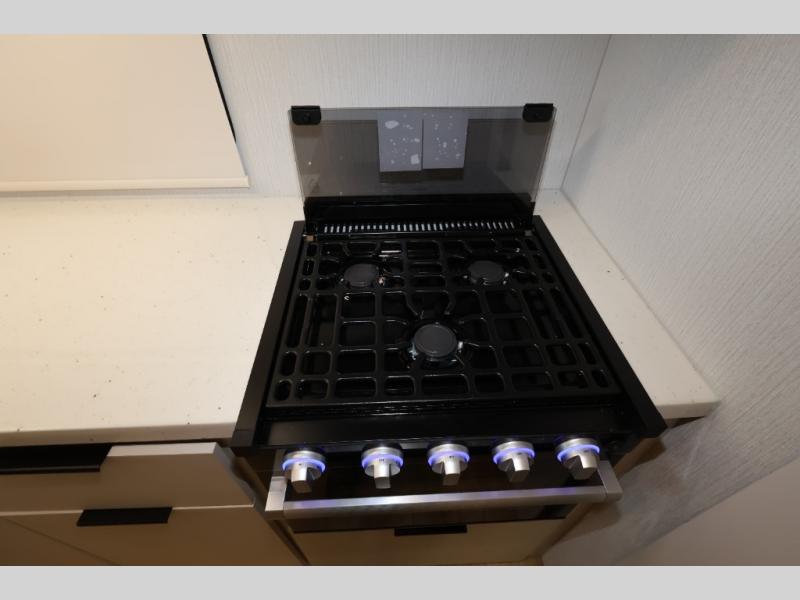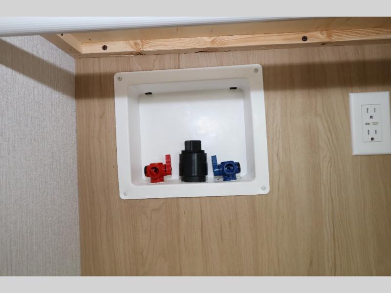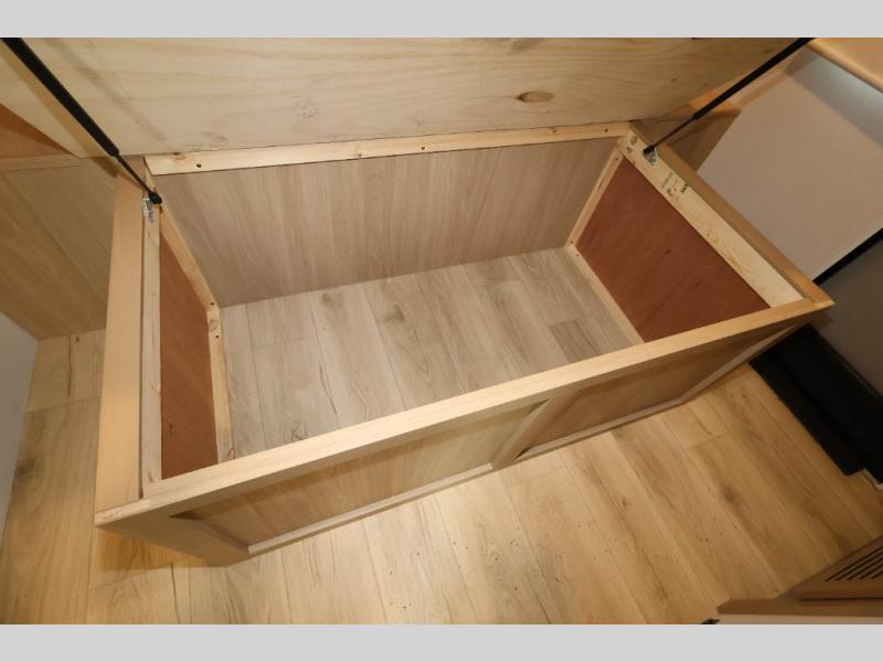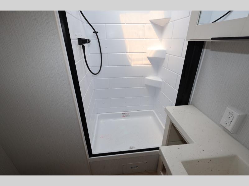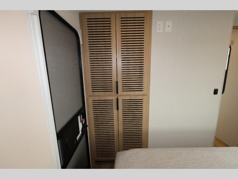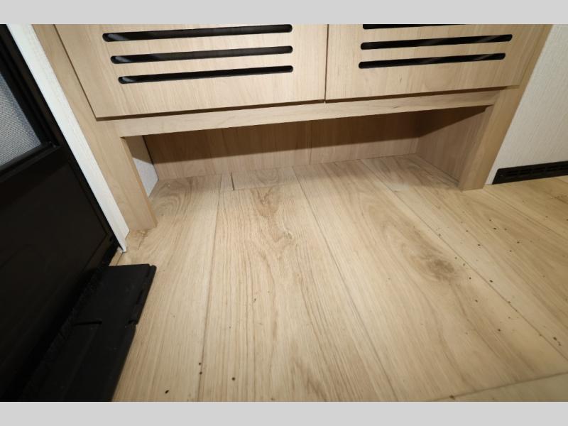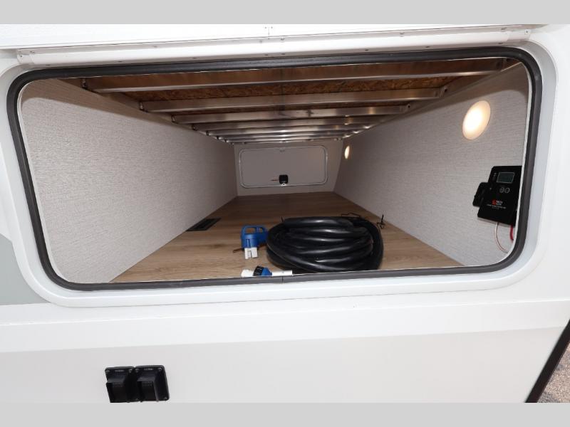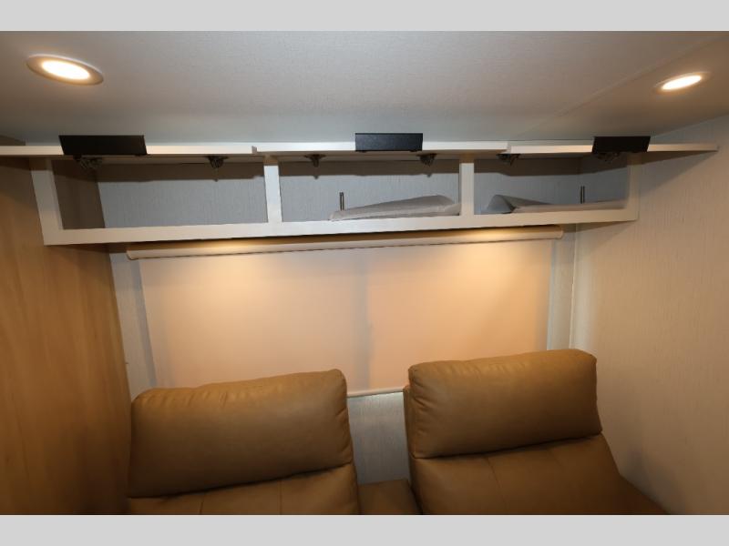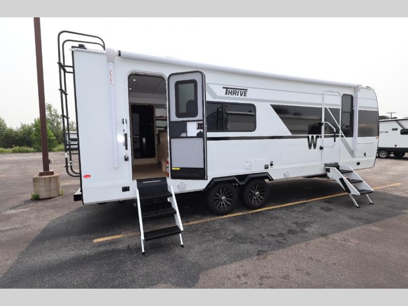 With any Thrive travel trailer by Winnebago, you can camp with functionality, comfort, and convenience! The large front viewing window with strike guard will be the first thing that catches your eye, and the fiberglass sidewalls with Azdel Onboard provide a durable trailer made to last. There is also an exterior ladder, along with front radius profile lights, power stabilizer jacks, and a powered awning with LED lighting to name a few exterior features. You will stay powered up by the 30-amp power cord and 200-watt solar panel, plus there is a tankless water heater for endless hot showers. Inside, you'll love the custom Winnebago furniture, carpetless side outs, molded fiberglass countertops, and residential recessed ceiling lights to keep your space well lit!
