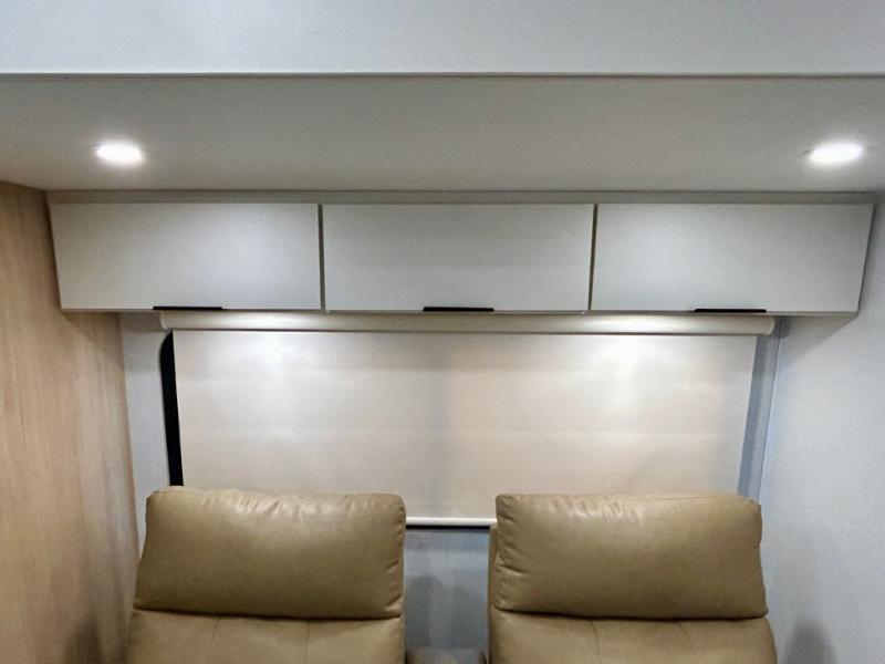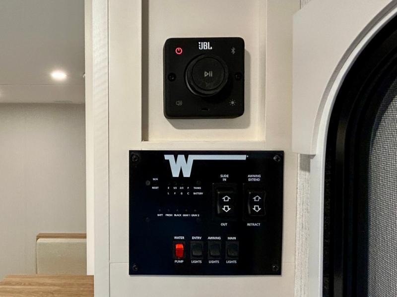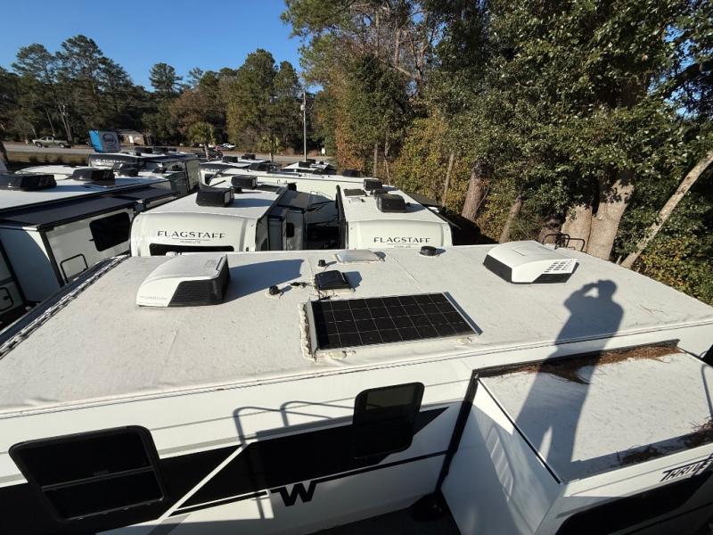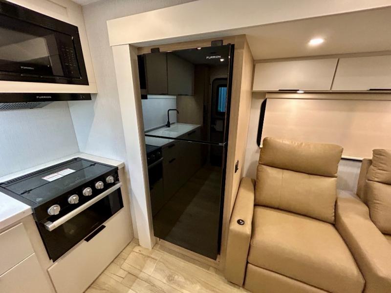 With any Thrive travel trailer by Winnebago, you can camp with functionality, comfort, and convenience! The large front viewing window with strike guard will be the first thing that catches your eye, and the fiberglass sidewalls with Azdel Onboard provide a durable trailer made to last. There is also an exterior ladder, along with front radius profile lights, power stabilizer jacks, and a powered awning with LED lighting to name a few exterior features. You will stay powered up by the 30-amp power cord and 200-watt solar panel, plus there is a tankless water heater for endless hot showers. Inside, you'll love the custom Winnebago furniture, carpetless side outs, molded fiberglass countertops, and residential recessed ceiling lights to keep your space well lit!