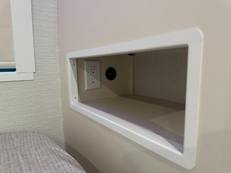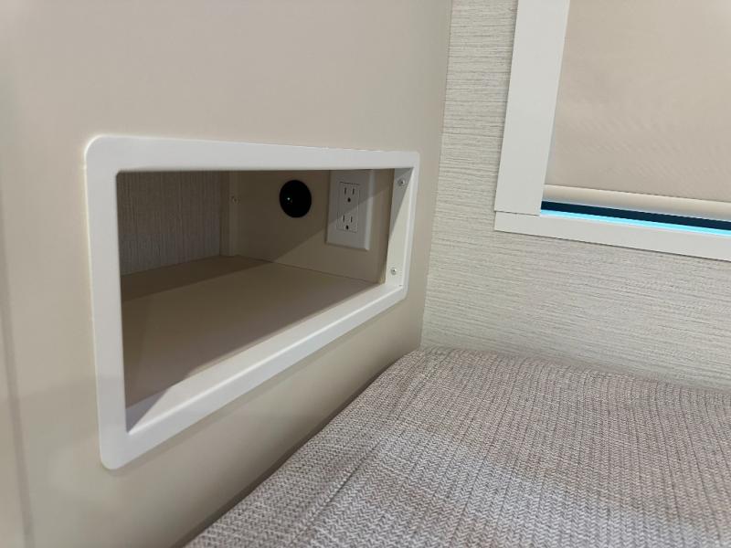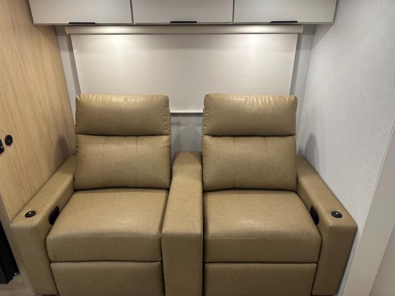 Inside, the Thrive 24RKS is designed with your comfort in mind. Enjoy custom Winnebago furniture crafted for style and durability, carpetless slide-outs for easy maintenance, and molded fiberglass countertops that are both functional and sleek. Residential-style recessed ceiling lights fill the space with warm, even lighting to make every moment inside enjoyable.