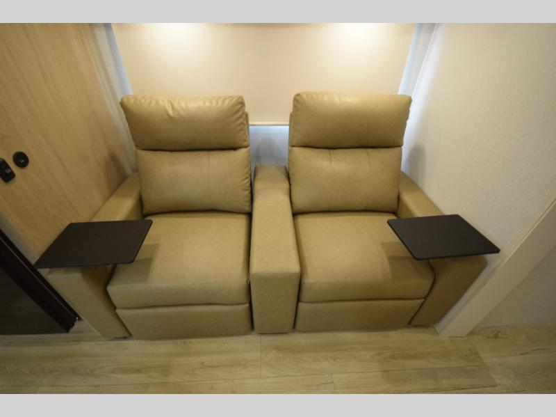 Theater seating across from the dinette offers a comfortable view of the TV