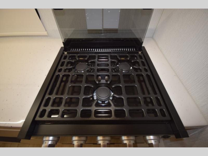Three-burner gas cooktop with oven and glass cover