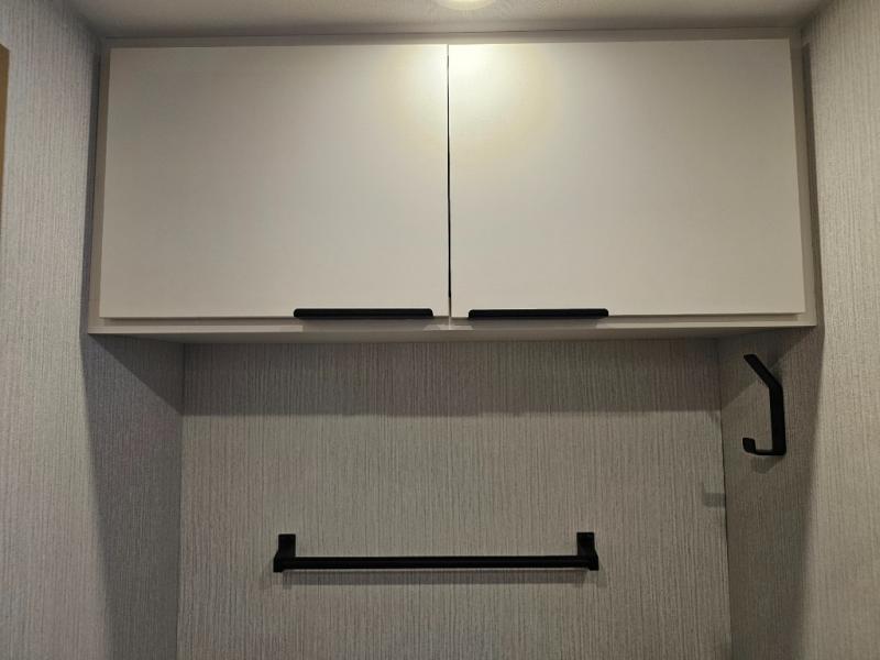 Overhead cabinet storage and nightstands for convenience