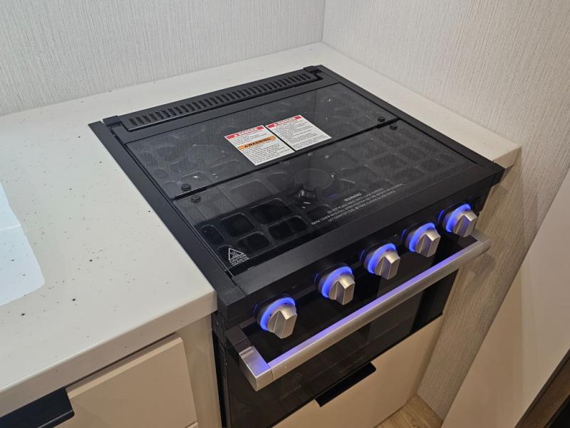 Three-burner gas cooktop with oven and glass cover