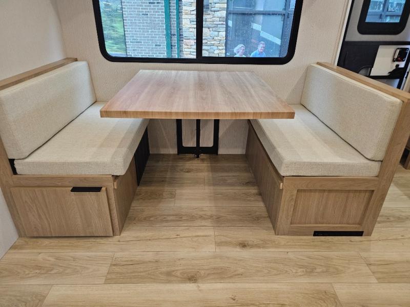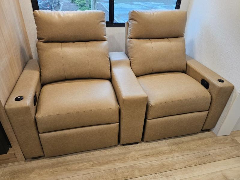 Theater seating across from the dinette offers a comfortable view of the TV