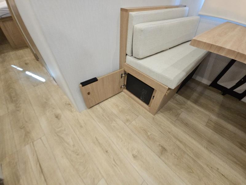 With any Thrive travel trailer by Winnebago, you can camp with functionality, comfort, and convenience! The large front viewing window with strike guard will be the first thing that catches your eye, and the fiberglass sidewalls with Azdel Onboard provide a durable trailer made to last. There is also an exterior ladder, along with front radius profile lights, power stabilizer jacks, and a powered awning with LED lighting to name a few exterior features. You will stay powered up by the 30-amp power cord and 200-watt solar panel, plus there is a tankless water heater for endless hot showers. Inside, you'll love the custom Winnebago furniture, carpetless side outs, molded fiberglass countertops, and residential recessed ceiling lights to keep your space well lit!