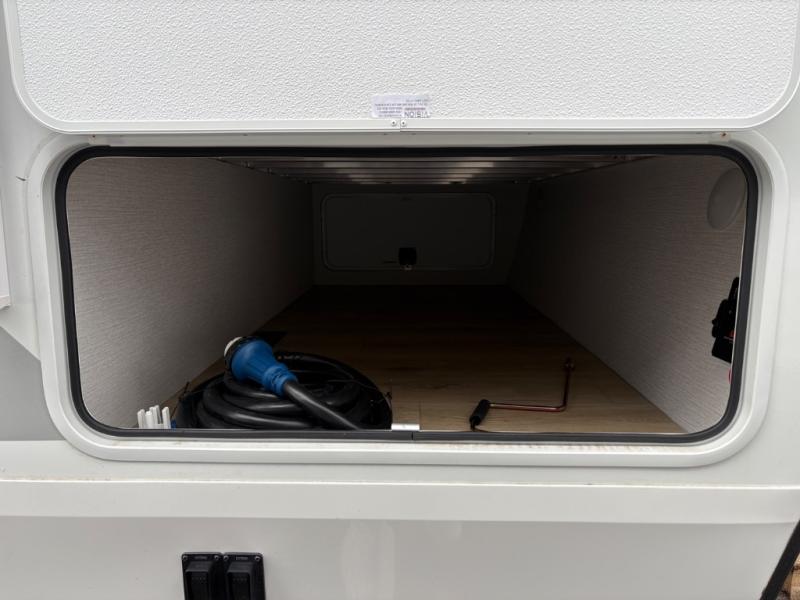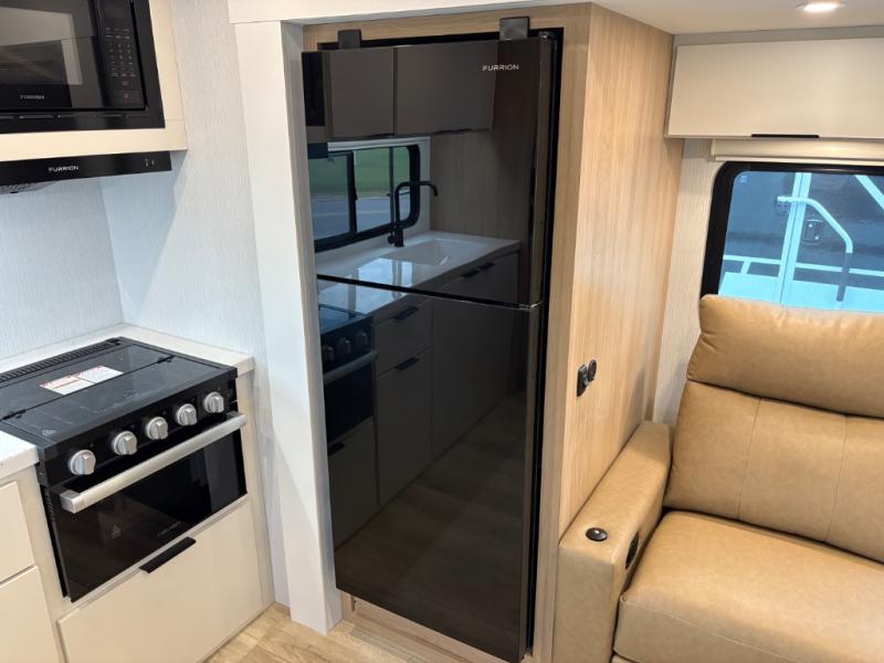 With any Thrive travel trailer by Winnebago, you can camp with functionality, comfort, and convenience! The large front viewing window with strike guard will be the first thing that catches your eye, and the fiberglass sidewalls with Azdel Onboard provide a durable trailer made to last. There is also an exterior ladder, along with front radius profile lights, power stabilizer jacks, and a powered awning with LED lighting to name a few exterior features. You will stay powered up by the 30-amp power cord and 200-watt solar panel, plus there is a tankless water heater for endless hot showers. Inside, you'll love the custom Winnebago furniture, carpetless side outs, molded fiberglass countertops, and residential recessed ceiling lights to keep your space well lit!