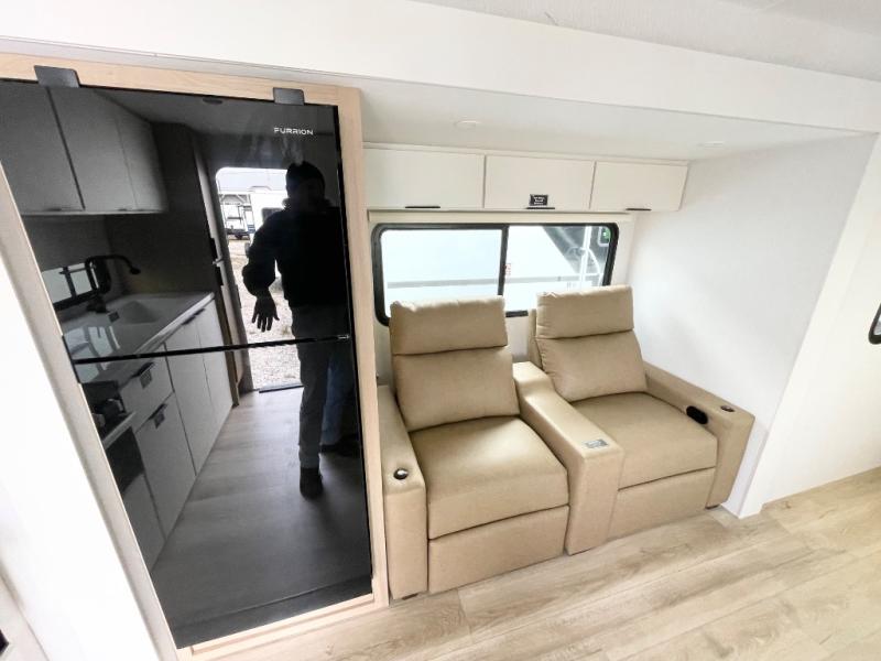 With any Thrive travel trailer by Winnebago, you can camp with functionality, comfort, and convenience! The large front viewing window with strike guard will be the first thing that catches your eye, and the fiberglass sidewalls with Azdel Onboard provide a durable trailer made to last. There is also an exterior ladder, along with front radius profile lights, power stabilizer jacks, and a powered awning with LED lighting to name a few exterior features. You will stay powered up by the 30-amp power cord and 200-watt solar panel, plus there is a tankless water heater for endless hot showers. Inside, you'll love the custom Winnebago furniture, carpetless side outs, molded fiberglass countertops, and residential recessed ceiling lights to keep your space well lit!