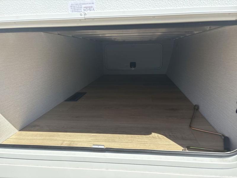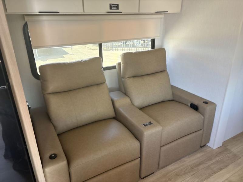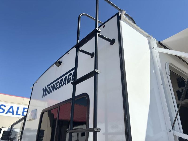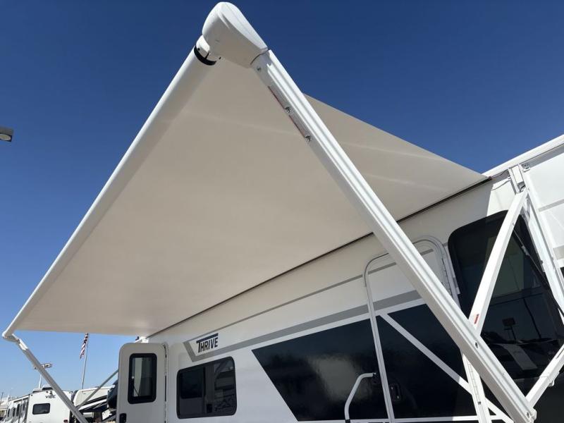 With any Thrive travel trailer by Winnebago, you can camp with functionality, comfort, and convenience! The large front viewing window with strike guard will be the first thing that catches your eye, and the fiberglass sidewalls with Azdel Onboard provide a durable trailer made to last. There is also an exterior ladder, along with front radius profile lights, power stabilizer jacks, and a powered awning with LED lighting to name a few exterior features. You will stay powered up by the 30-amp power cord and 200-watt solar panel, plus there is a tankless water heater for endless hot showers. Inside, you'll love the custom Winnebago furniture, carpetless side outs, molded fiberglass countertops, and residential recessed ceiling lights to keep your space well lit!