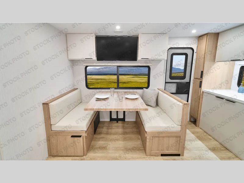 With any Thrive travel trailer by Winnebago, you can camp with functionality, comfort, and convenience! The large front viewing window with strike guard will be the first thing that catches your eye, and the fiberglass sidewalls with Azdel Onboard provide a durable trailer made to last. There is also an exterior ladder, along with front radius profile lights, power stabilizer jacks, and a powered awning with LED lighting to name a few exterior features. You will stay powered up by the 30-amp power cord and 200-watt solar panel, plus there is a tankless water heater for endless hot showers. Inside, you'll love the custom Winnebago furniture, carpetless side outs, molded fiberglass countertops, and residential recessed ceiling lights to keep your space well lit!