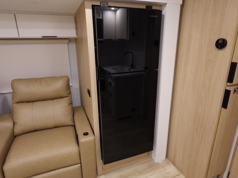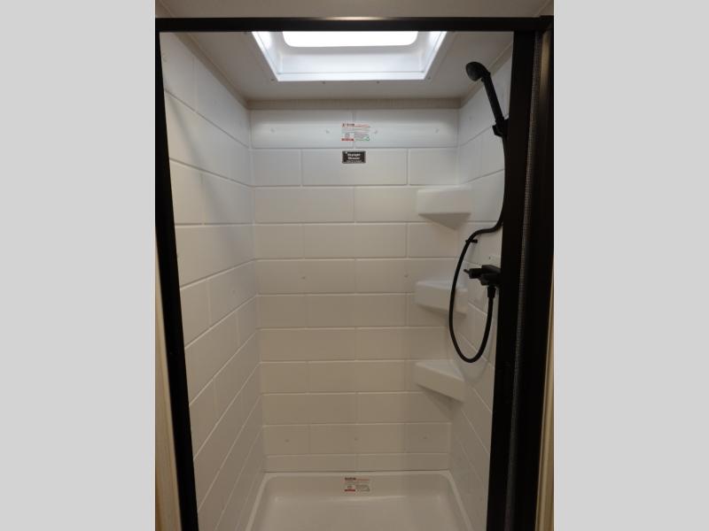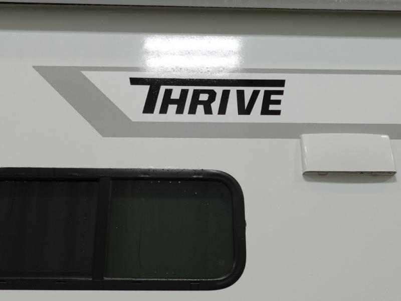 With any Thrive travel trailer by Winnebago, you can camp with functionality, comfort, and convenience! The large front viewing window with strike guard will be the first thing that catches your eye, and the fiberglass sidewalls with Azdel Onboard provide a durable trailer made to last. There is also an exterior ladder, along with front radius profile lights, power stabilizer jacks, and a powered awning with LED lighting to name a few exterior features. You will stay powered up by the 30-amp power cord and 200-watt solar panel, plus there is a tankless water heater for endless hot showers. Inside, you'll love the custom Winnebago furniture, carpetless side outs, molded fiberglass countertops, and residential recessed ceiling lights to keep your space well lit!