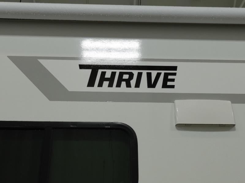 With any Thrive travel trailer by Winnebago, you can camp with functionality, comfort, and convenience! The large front viewing window with strike guard will be the first thing that catches your eye, and the fiberglass sidewalls with Azdel Onboard provide a durable trailer made to last. There is also an exterior ladder, along with front radius profile lights, power stabilizer jacks, and a powered awning with LED lighting to name a few exterior features. You will stay powered up by the 30-amp power cord and 200-watt solar panel, plus there is a tankless water heater for endless hot showers. Inside, you'll love the custom Winnebago furniture, carpetless side outs, molded fiberglass countertops, and residential recessed ceiling lights to keep your space well lit!