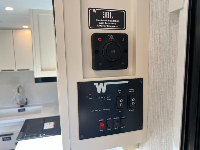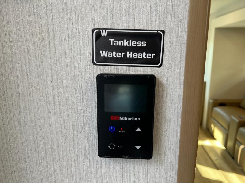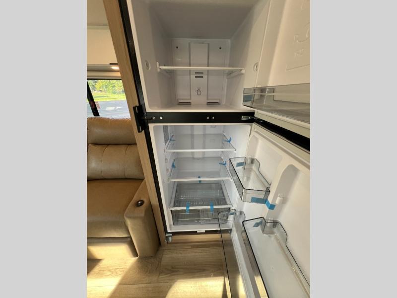 With any Thrive travel trailer by Winnebago, you can camp with functionality, comfort, and convenience! The large front viewing window with strike guard will be the first thing that catches your eye, and the fiberglass sidewalls with Azdel Onboard provide a durable trailer made to last. There is also an exterior ladder, along with front radius profile lights, power stabilizer jacks, and a powered awning with LED lighting to name a few exterior features. You will stay powered up by the 30-amp power cord and 200-watt solar panel, plus there is a tankless water heater for endless hot showers. Inside, you'll love the custom Winnebago furniture, carpetless side outs, molded fiberglass countertops, and residential recessed ceiling lights to keep your space well lit!
