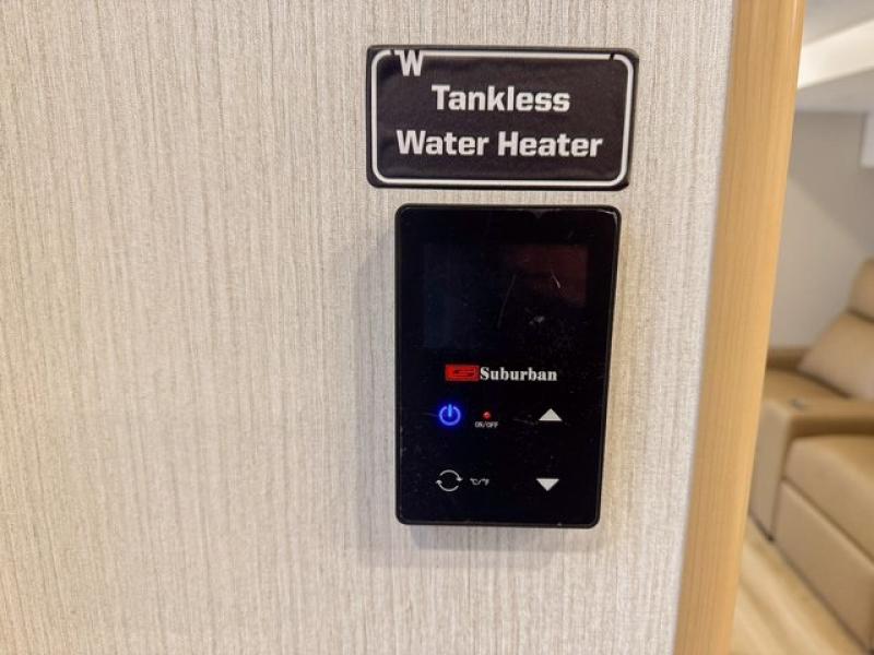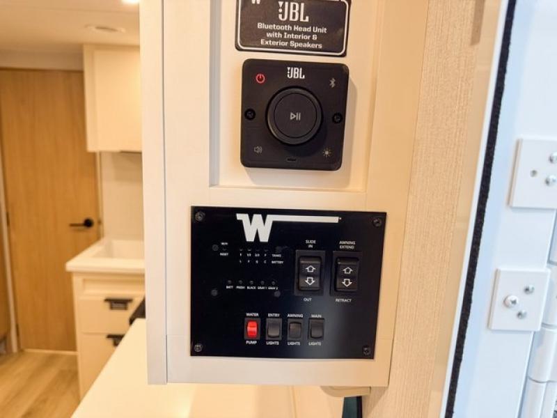With any Thrive travel trailer by Winnebago, you can camp with functionality, comfort, and convenience! The large front viewing window with strike guard will be the first thing that catches your eye, and the fiberglass sidewalls with Azdel Onboard provide a durable trailer made to last. There is also an exterior ladder, along with front radius profile lights, power stabilizer jacks, and a powered awning with LED lighting to name a few exterior features. You will stay powered up by the 30-amp power cord and 200-watt solar panel, plus there is a tankless water heater for endless hot showers. Inside, you'll love the custom Winnebago furniture, carpetless side outs, molded fiberglass countertops, and residential recessed ceiling lights to keep your space well lit!