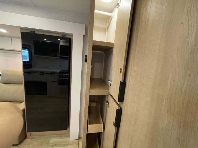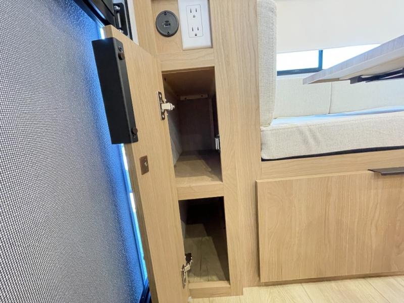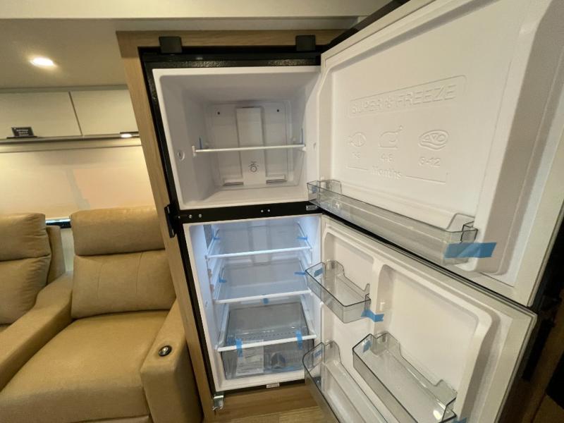 With any Thrive travel trailer by Winnebago, you can camp with functionality, comfort, and convenience! The large front viewing window with strike guard will be the first thing that catches your eye, and the fiberglass sidewalls with Azdel Onboard provide a durable trailer made to last. There is also an exterior ladder, along with front radius profile lights, power stabilizer jacks, and a powered awning with LED lighting to name a few exterior features. You will stay powered up by the 30-amp power cord and 200-watt solar panel, plus there is a tankless water heater for endless hot showers. Inside, you'll love the custom Winnebago furniture, carpetless side outs, molded fiberglass countertops, and residential recessed ceiling lights to keep your space well lit!