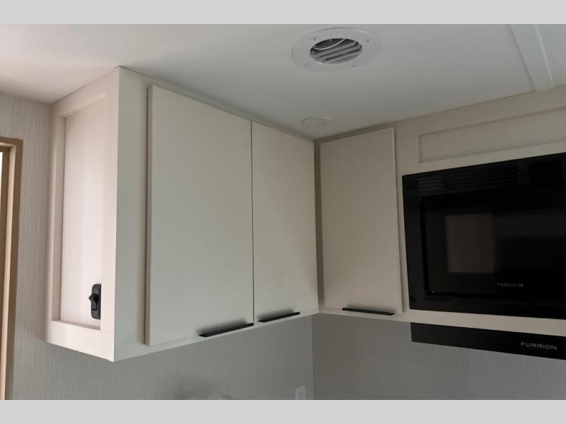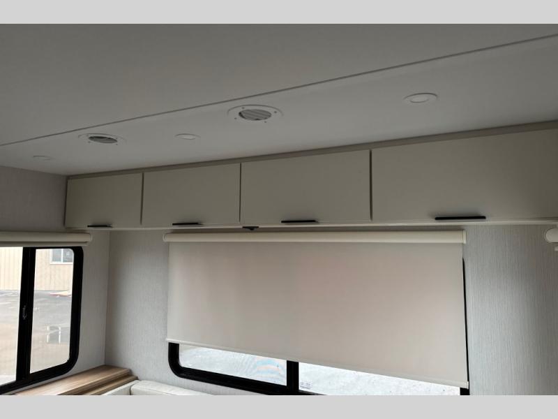 With any Thrive travel trailer by Winnebago, you can camp with functionality, comfort, and convenience! The large front viewing window with strike guard will be the first thing that catches your eye, and the fiberglass sidewalls with Azdel Onboard provide a durable trailer made to last. There is also an exterior ladder, along with front radius profile lights, power stabilizer jacks, and a powered awning with LED lighting to name a few exterior features. You will stay powered up by the 30-amp power cord and 200-watt solar panel, plus there is a tankless water heater for endless hot showers. Inside, you'll love the custom Winnebago furniture, carpetless side outs, molded fiberglass countertops, and residential recessed ceiling lights to keep your space well lit!