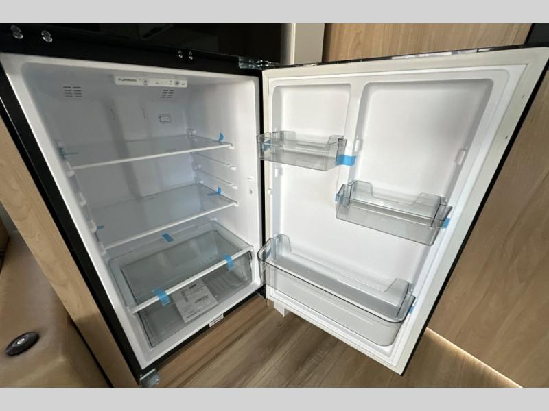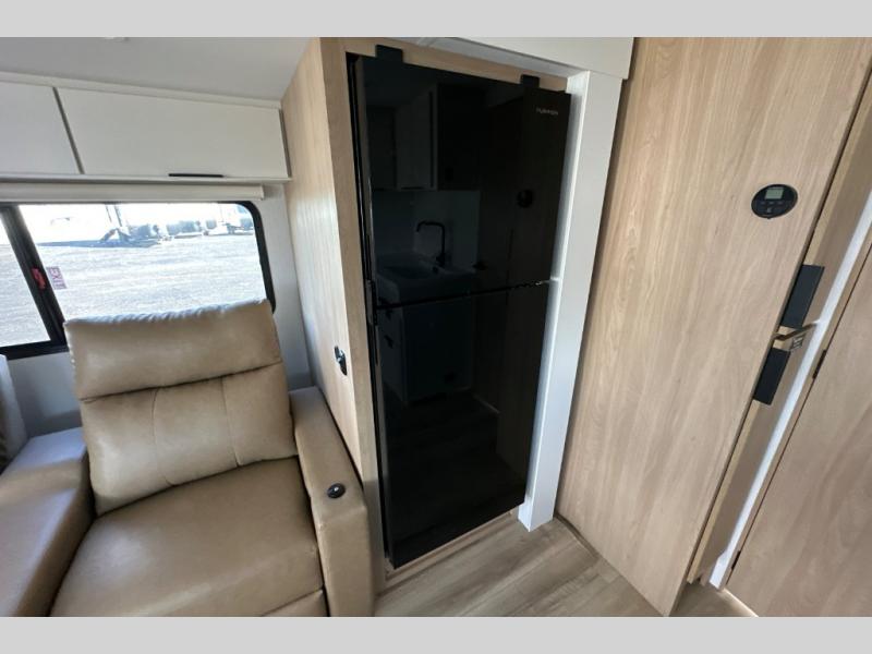 With any Thrive travel trailer by Winnebago, you can camp with functionality, comfort, and convenience! The large front viewing window with strike guard will be the first thing that catches your eye, and the fiberglass sidewalls with Azdel Onboard provide a durable trailer made to last. There is also an exterior ladder, along with front radius profile lights, power stabilizer jacks, and a powered awning with LED lighting to name a few exterior features. You will stay powered up by the 30-amp power cord and 200-watt solar panel, plus there is a tankless water heater for endless hot showers. Inside, you'll love the custom Winnebago furniture, carpetless side outs, molded fiberglass countertops, and residential recessed ceiling lights to keep your space well lit!