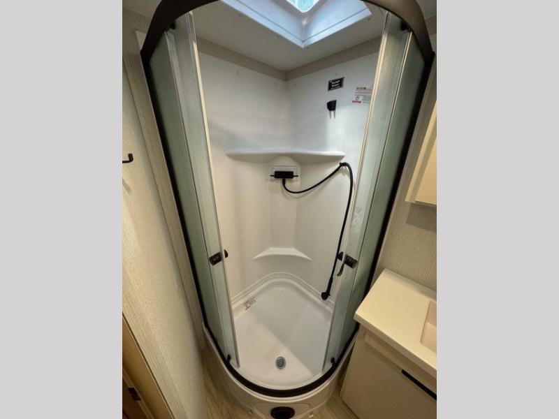 With any Thrive travel trailer by Winnebago, you can camp with functionality, comfort, and convenience! The large front viewing window with strike guard will be the first thing that catches your eye, and the fiberglass sidewalls with Azdel Onboard provide a durable trailer made to last. There is also an exterior ladder, along with front radius profile lights, power stabilizer jacks, and a powered awning with LED lighting to name a few exterior features. You will stay powered up by the 30-amp power cord and 200-watt solar panel, plus there is a tankless water heater for endless hot showers. Inside, you'll love the custom Winnebago furniture, carpetless side outs, molded fiberglass countertops, and residential recessed ceiling lights to keep your space well lit!